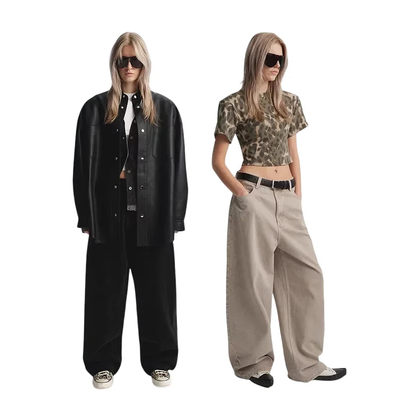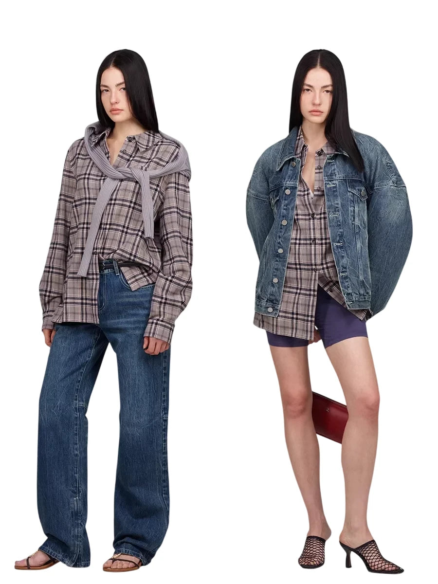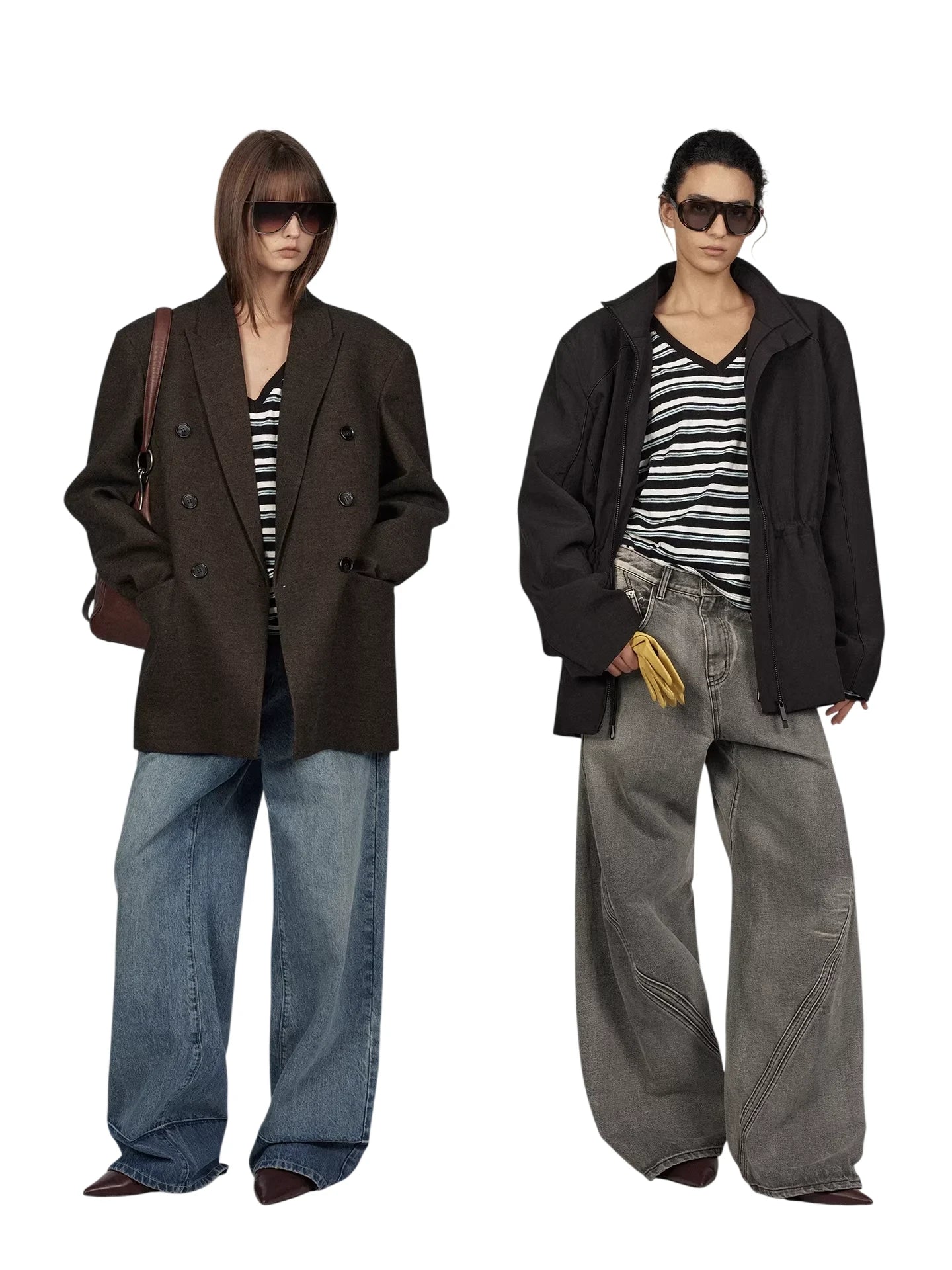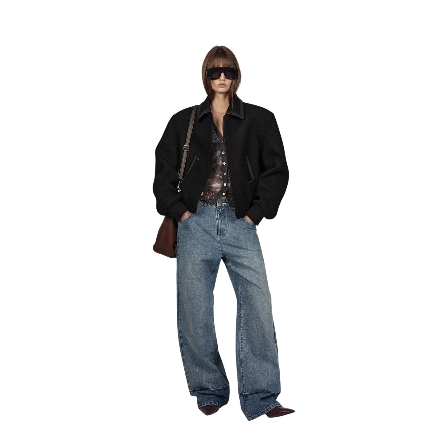 ACSENSE STUDIO Two-Tone Distressed Wide-Leg Jeans