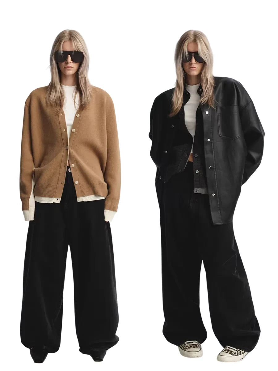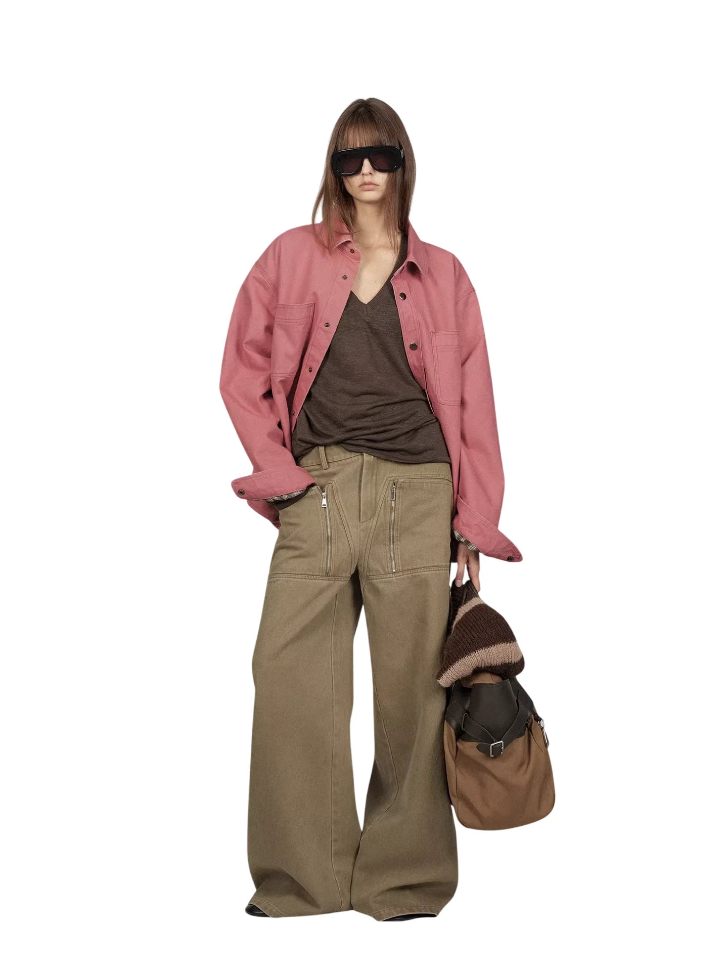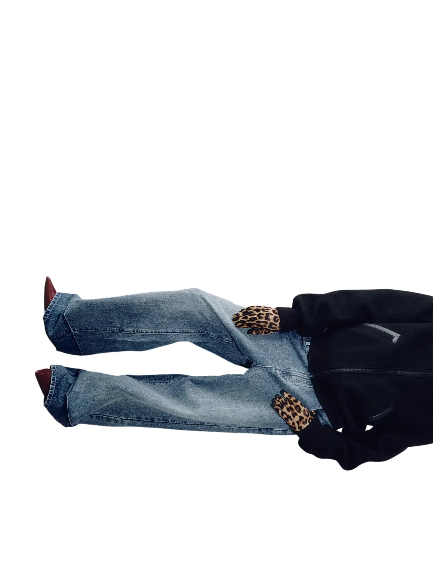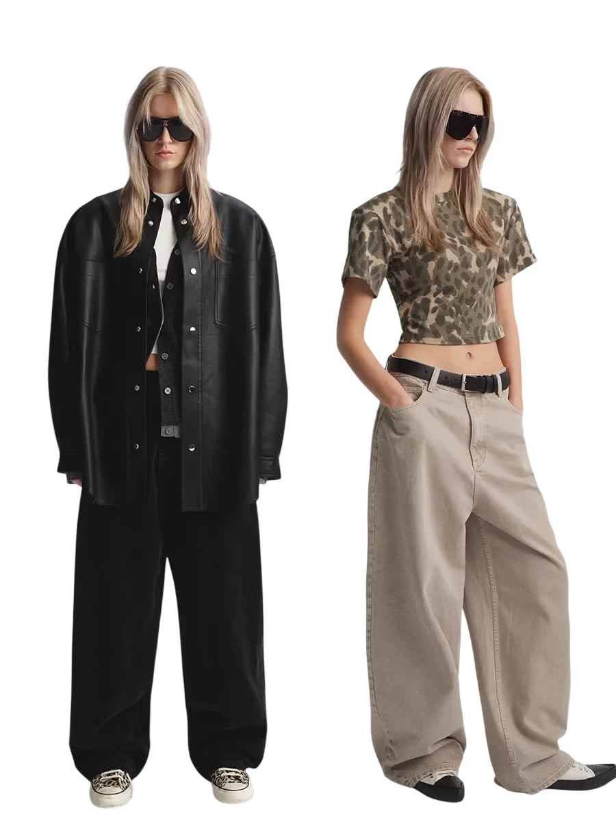 ACSENSE STUDIO Two-Tone Distressed Wide-Leg Jeans