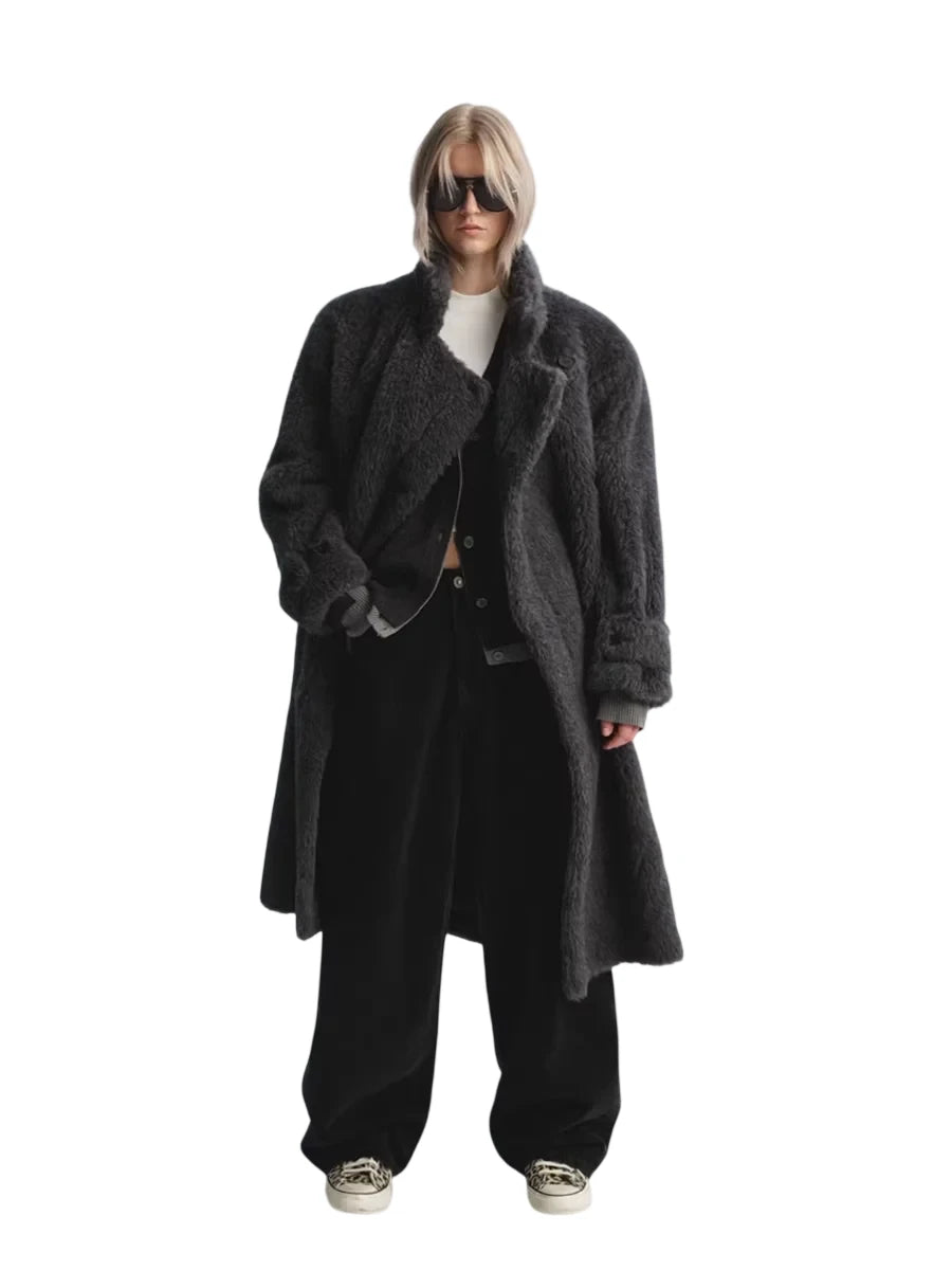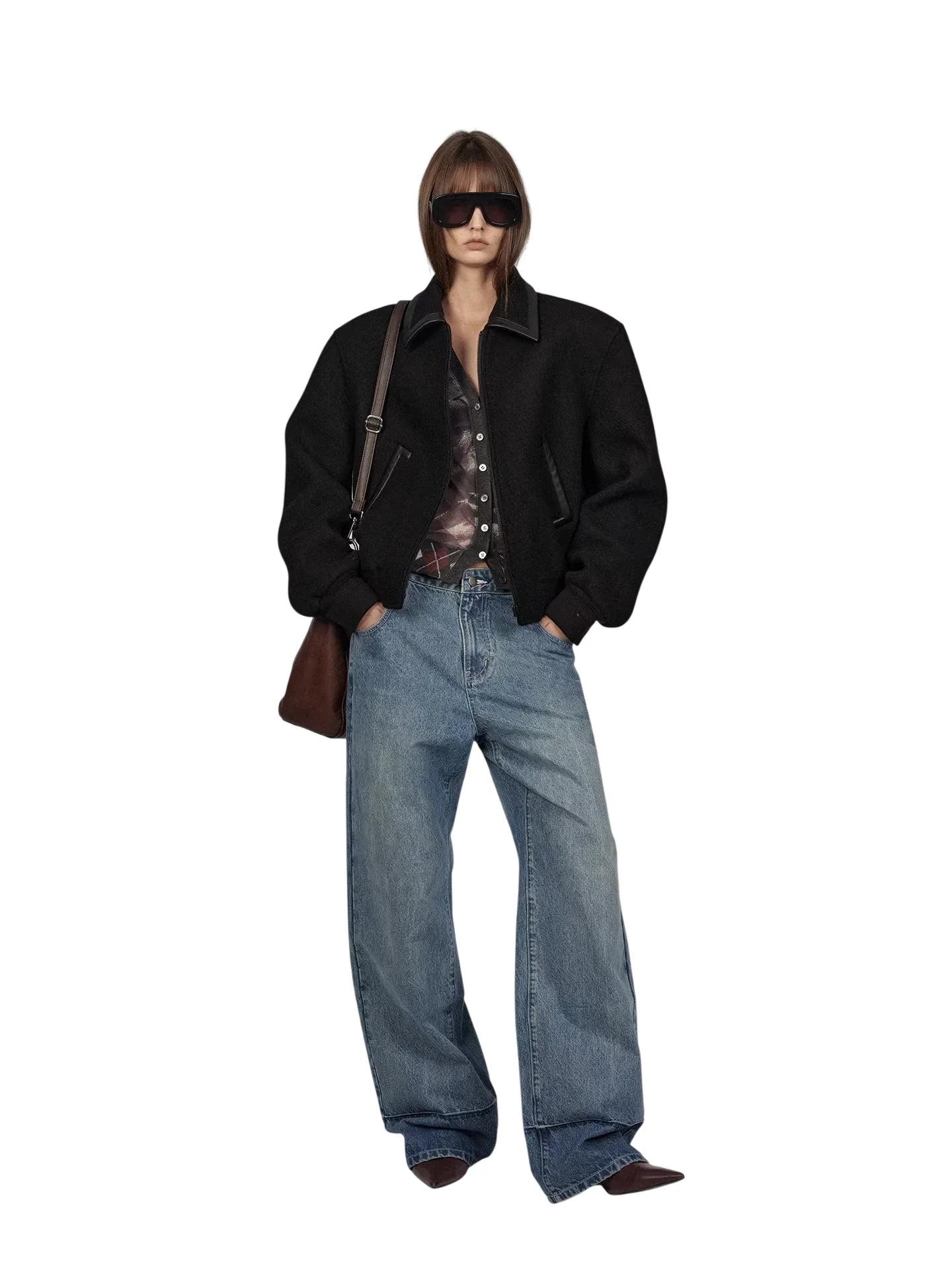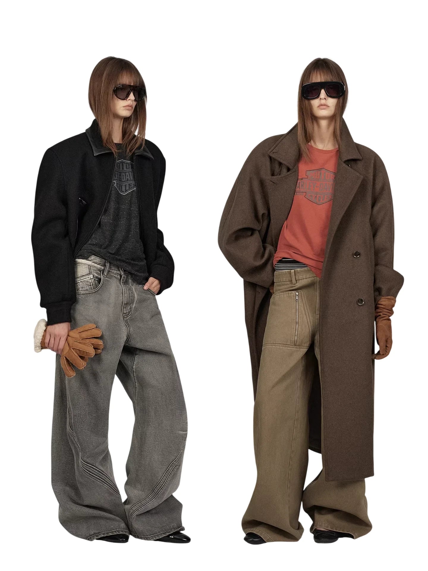 ACSENSE STUDIO Colorblock Wool Coat with Detachable Fur Collar