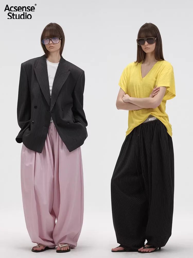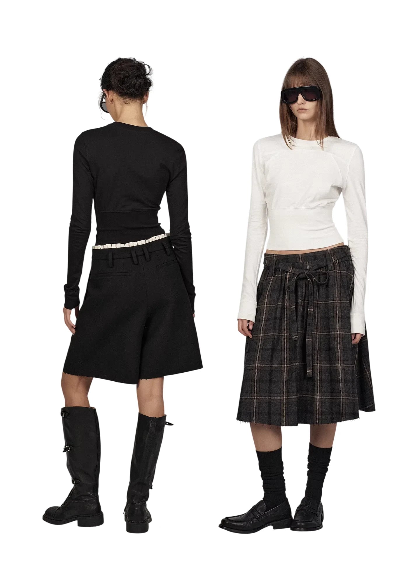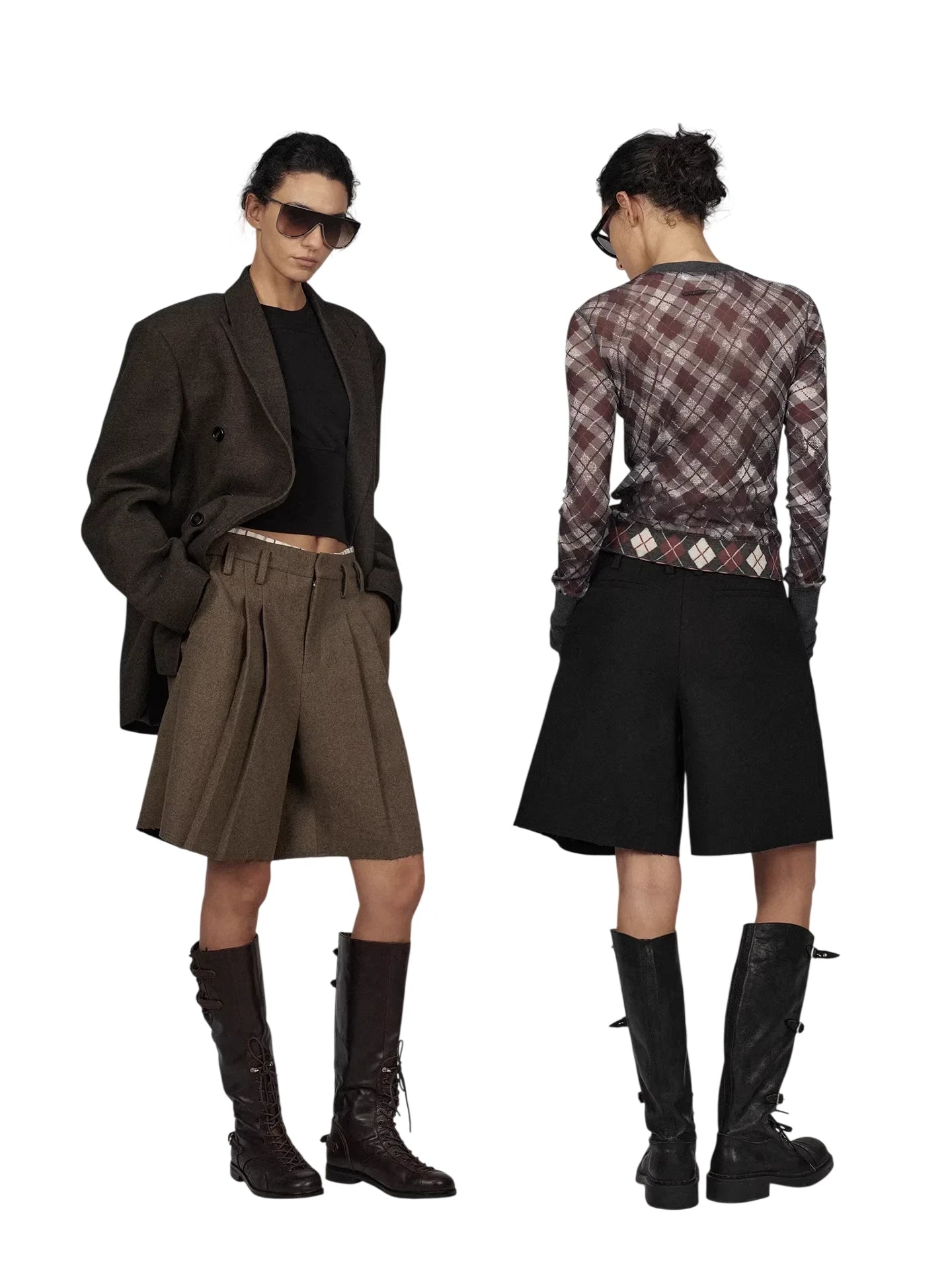 ACSENSE STUDIO Pleated Wool Patchwork Shorts