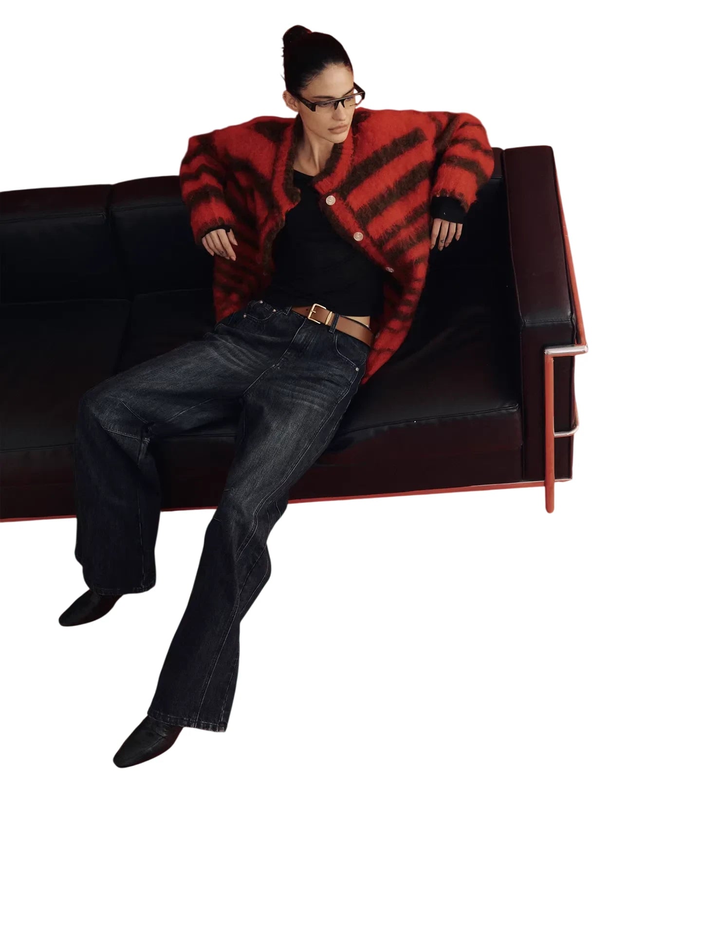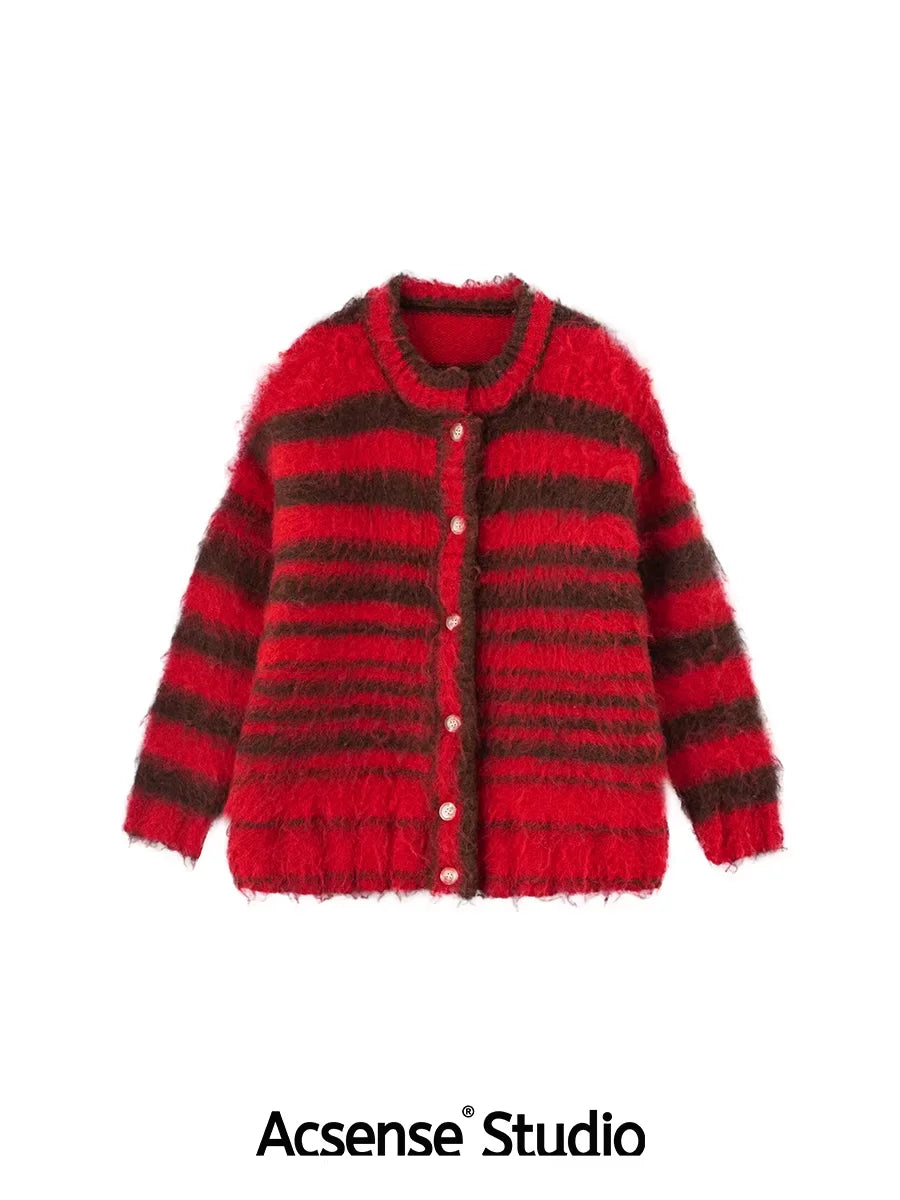ACSENSE STUDIO Colorblock Striped Brushed Wool Knit Cardigan