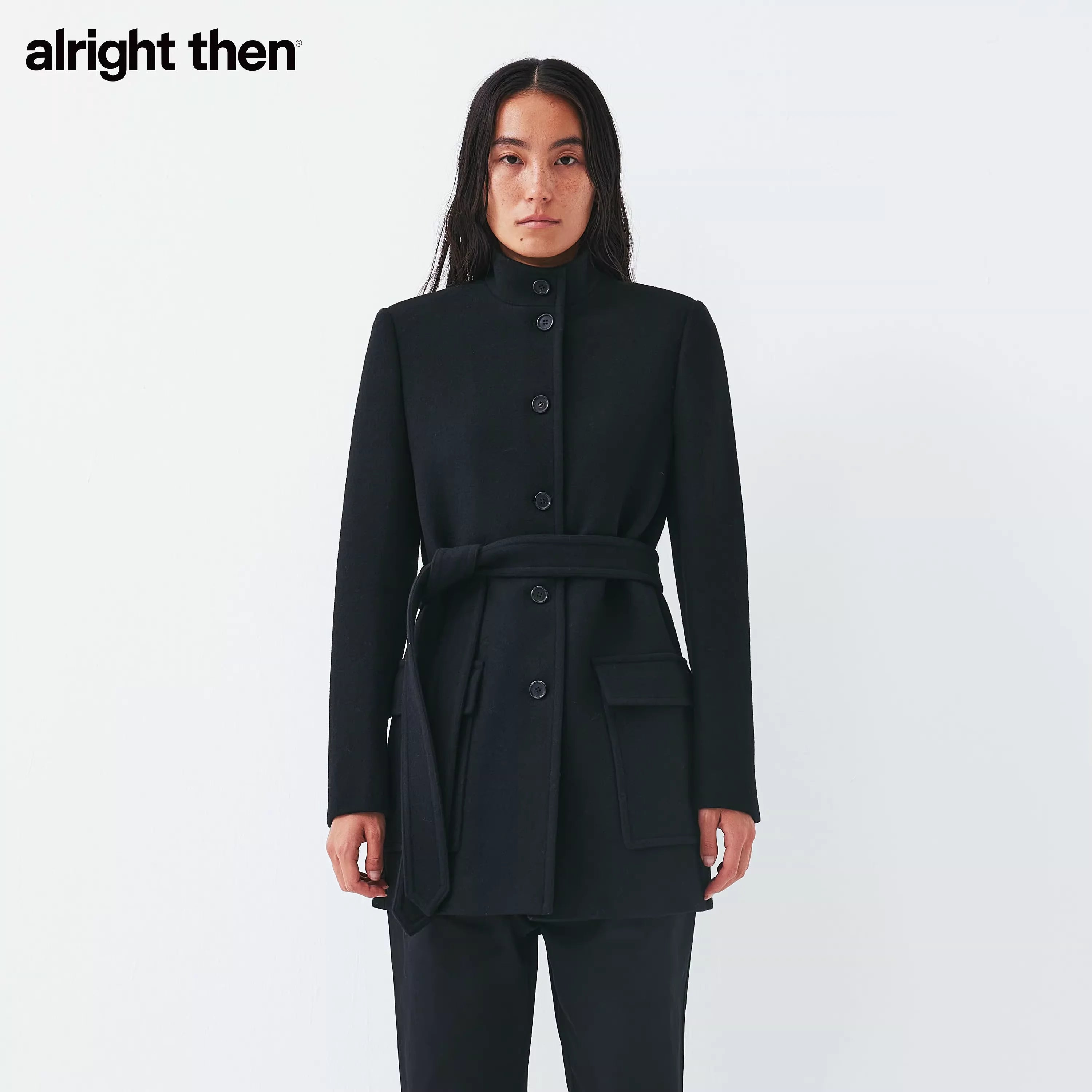 alright then Black Stand Collar Slim Fit Woolen Coat