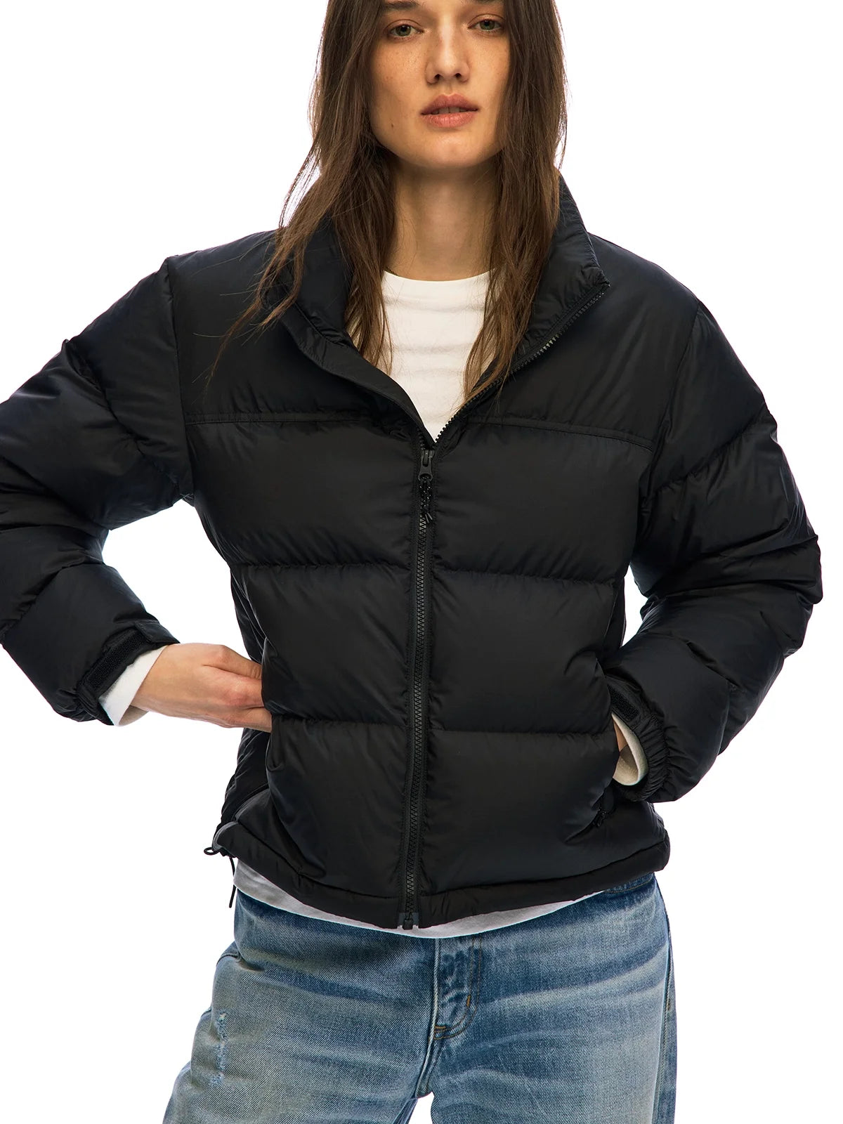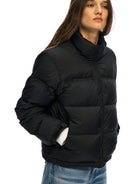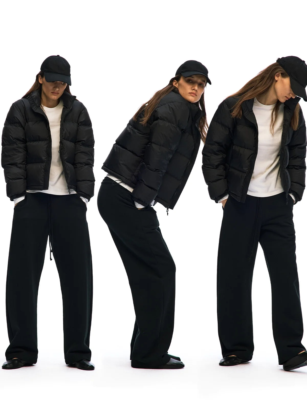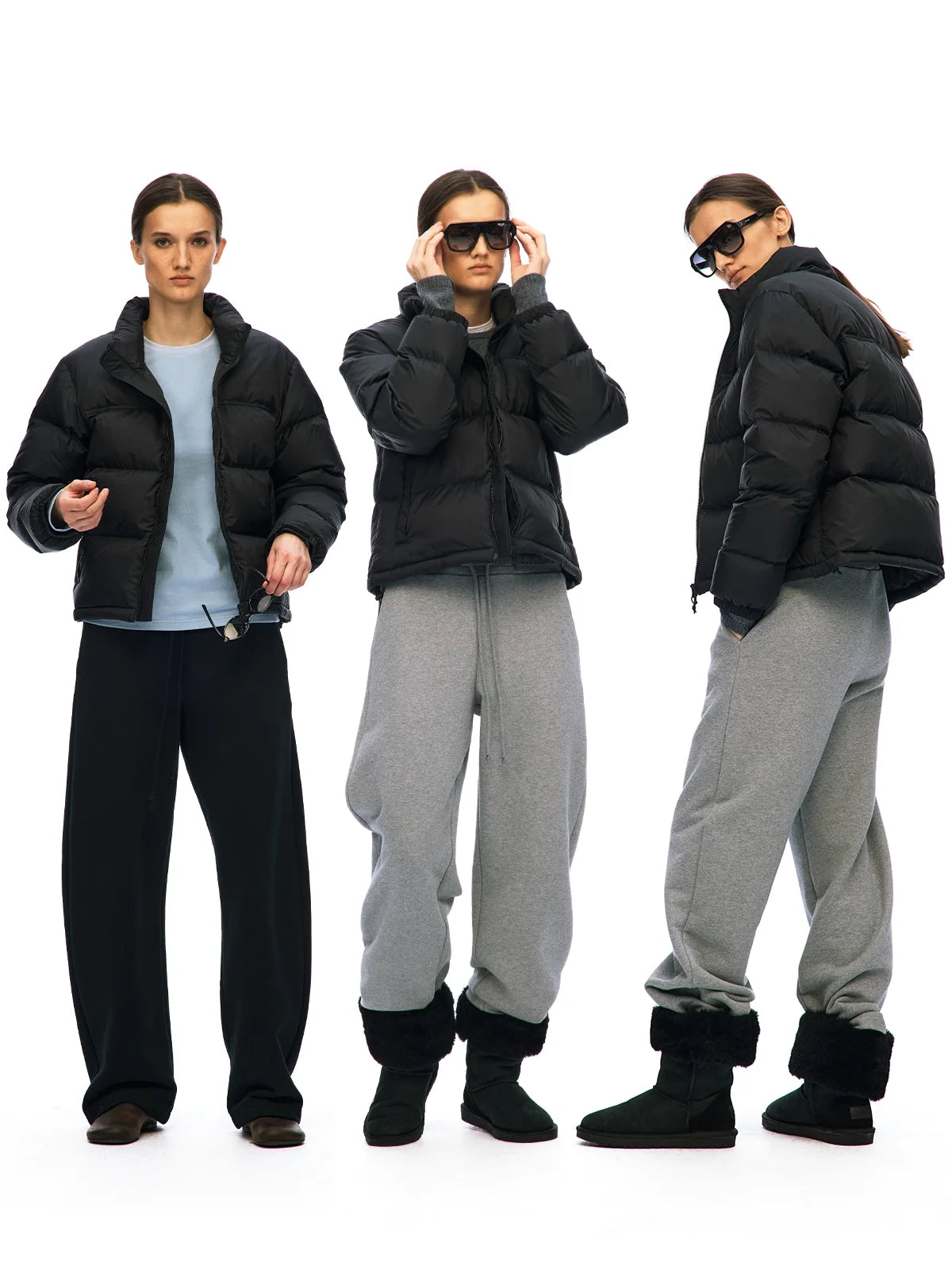 alright then Short Puffer Down Jacket with Stand Collar and Grid Stitching