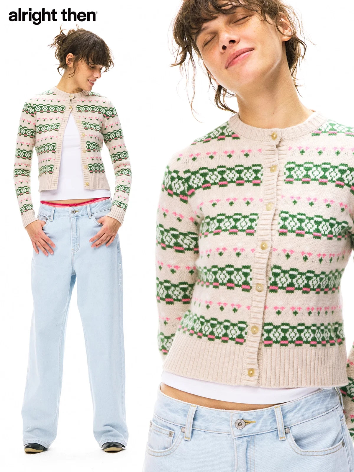 alright then Two-Tone Wool Jacquard Knit Cardigan