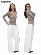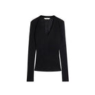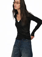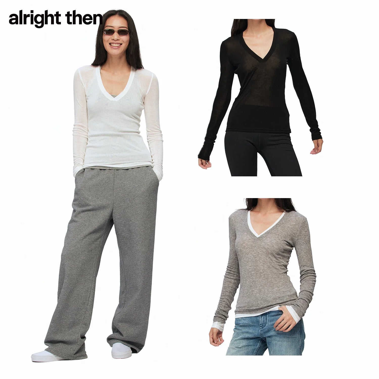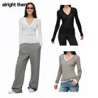 alright then Women's Deep V-Neck Slim Fit Long Sleeve Top