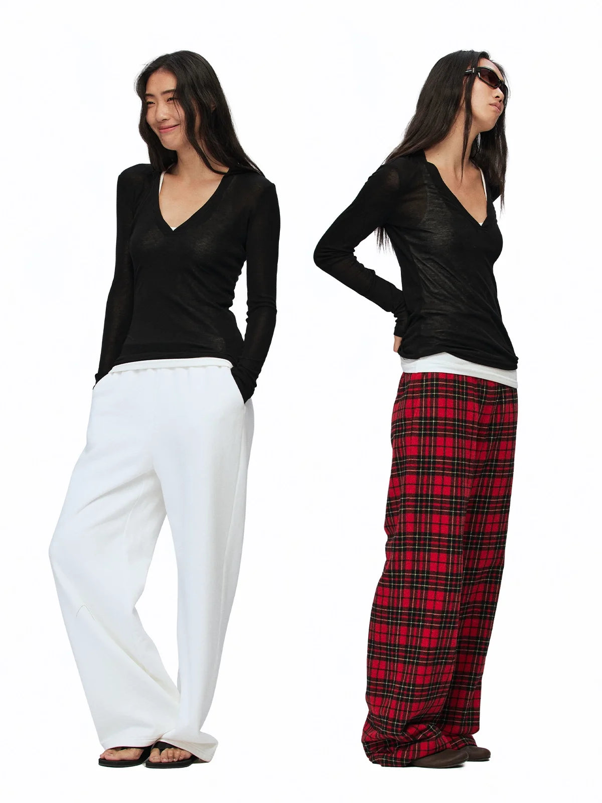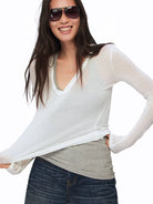 Elevate your everyday wardrobe with this women's deep V-neck slim fit long sleeve top. Designed for a sleek silhouette, this soft knit shirt features lightweight, slightly sheer fabric perfect for layering or casual wear. The minimalist style comes in versatile colors like white, black, and heather gray, making it easy to pair with a variety of bottoms—from jeans to lounge pants. Ideal for creating simple, modern looks with comfort and ease.