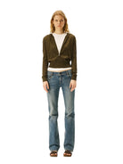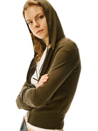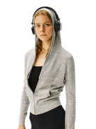 Elevate your casual wardrobe with this women's zip-up hoodie, crafted from soft merino wool for a lightweight and cozy feel. Designed with a slim, cropped silhouette, it features a front zipper closure, long sleeves, and a subtle stretch for added comfort. Available in three versatile colors—light grey, dark brown, and black—it's perfect for layering over your favorite tees or tanks. Ideal for everyday wear, whether paired with jeans, leggings, or cycling shorts.