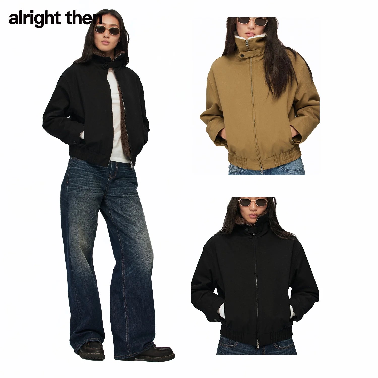 alright then Women's Loose Fit Faux Shearling Canvas Cotton Jacket