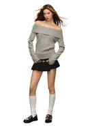 ARISEISM Off-Shoulder Long Sleeve Knit Sweater for Women
