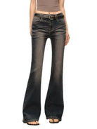 ARISEISM Women's High-Waisted Flared Jeans - Slim Fit Denim Pants