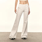 Stay stylish and comfortable with these women's high-waisted flared yoga sweatpants, perfect for casual wear during the fall season. Made from a soft, medium-weight knit or cotton-blend fabric, these pants feature a subtle vertical seam detail along the front of each leg, combining comfort with a flattering silhouette. Available in multiple colors including black, grey, navy, white, and brown, they effortlessly pair with crop tops or relaxed favorites for a chic, laid-back look.