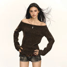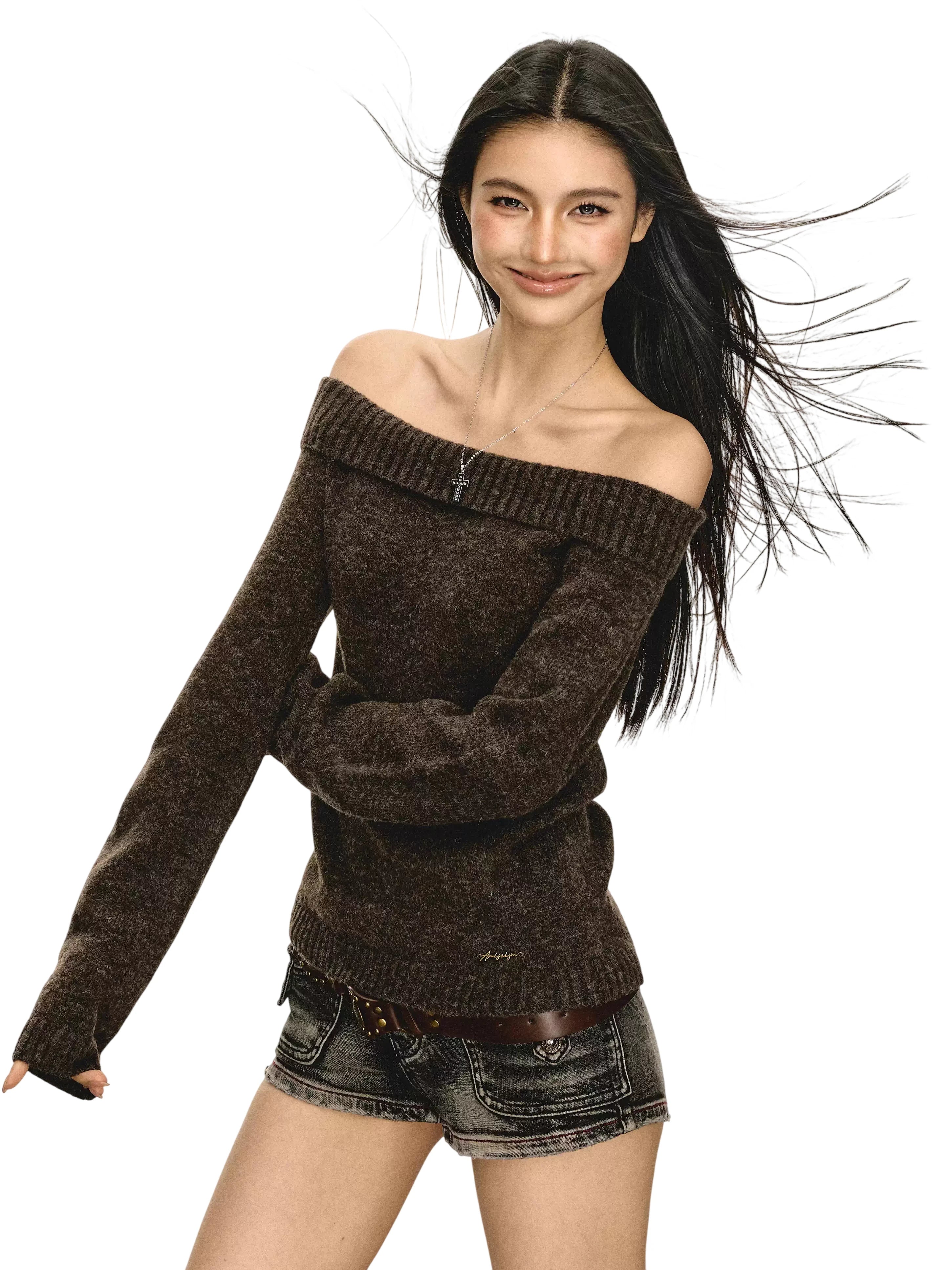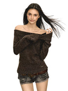 Stay cozy and stylish with this women's off-shoulder long sleeve knitted sweater. Designed in an American retro style, it features a flattering ribbed neckline and form-fitting silhouette, perfect as an autumn inner layer. The soft knit texture offers comfort and warmth, making it an ideal choice for cooler days. Pair it with your favorite accessories for a chic, minimal look.
