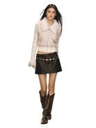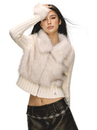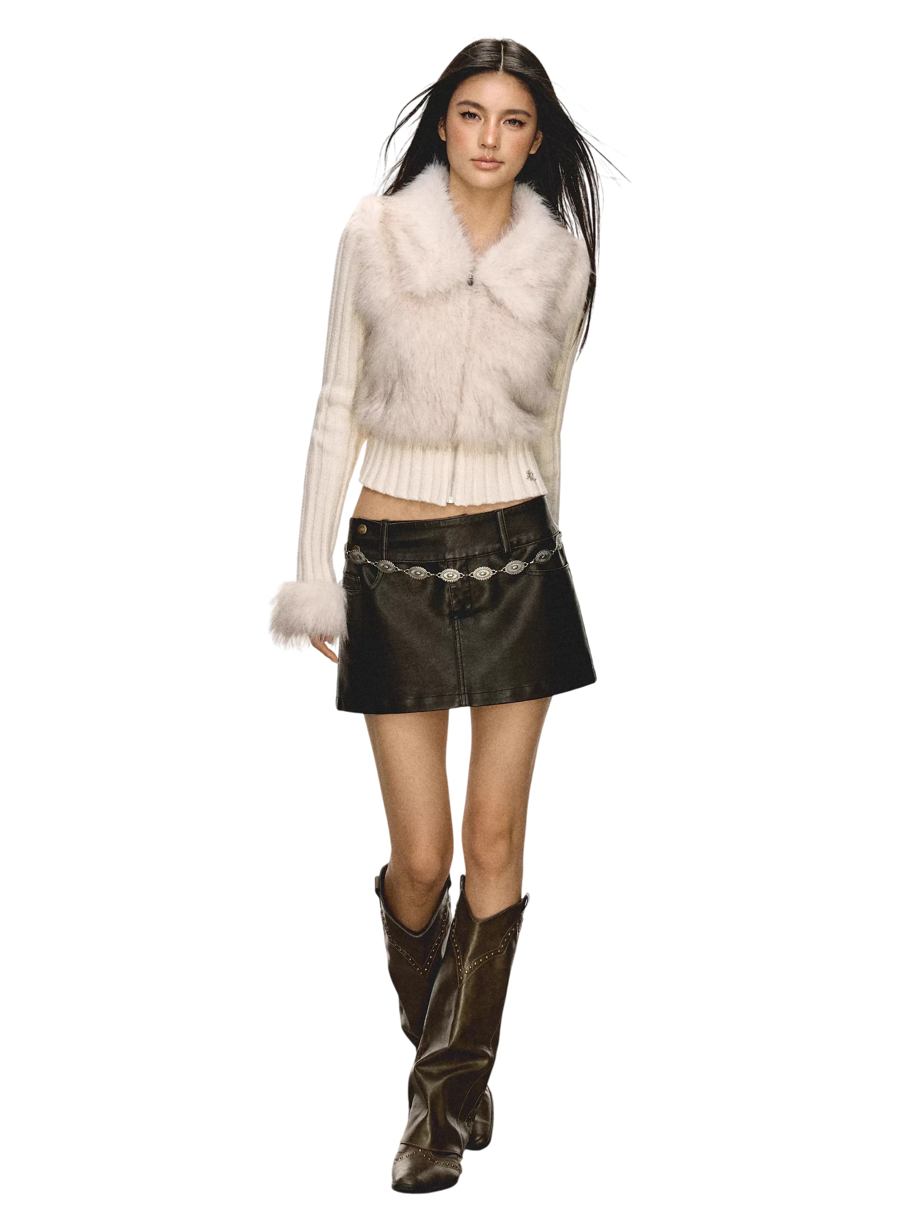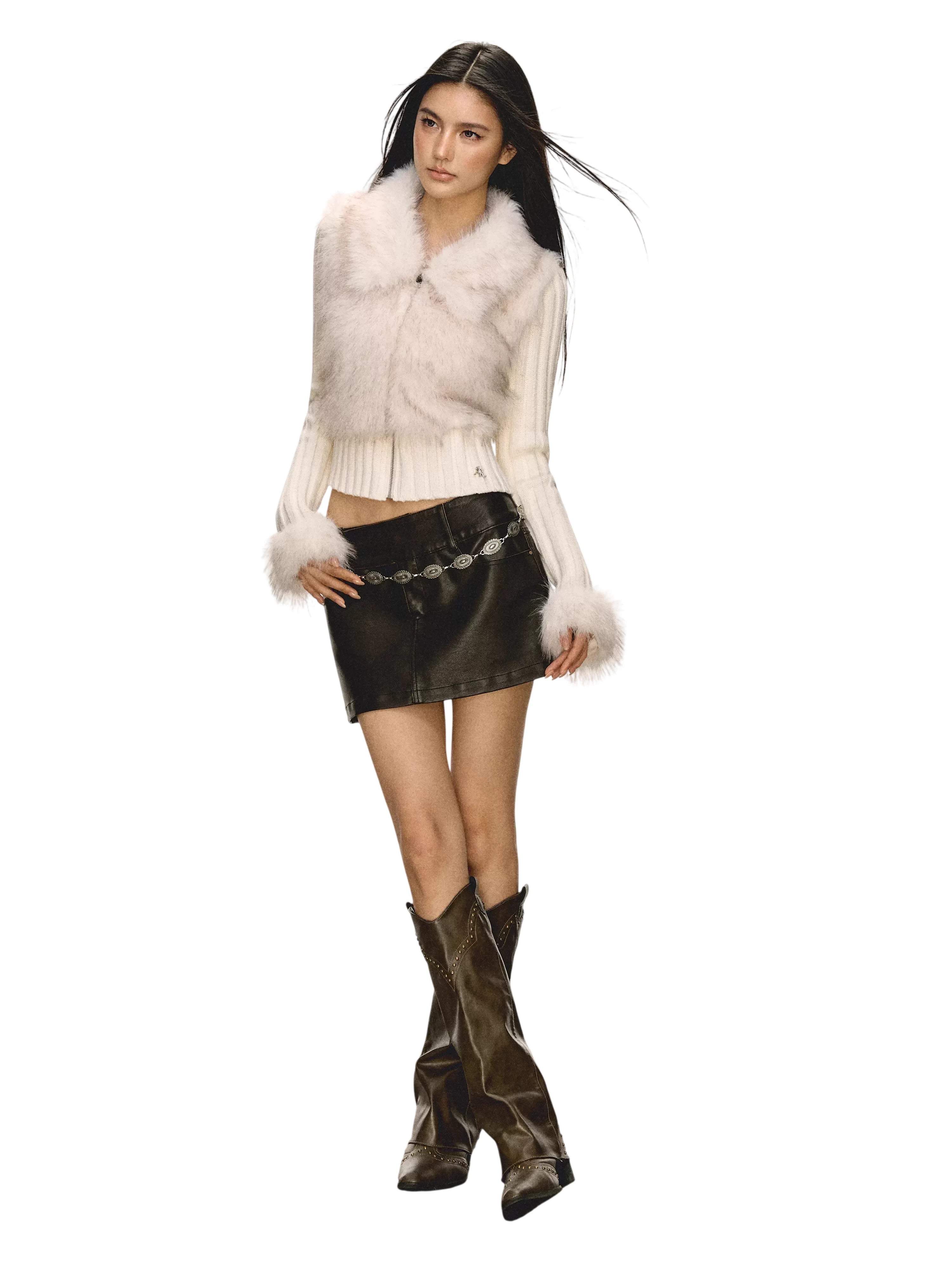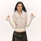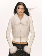 Stay warm and stylish with this women's patchwork cardigan, crafted with a soft knit texture and a slim fit silhouette. Featuring a cozy faux fur collar and matching fur-trimmed cuffs, this zip-up sweater is perfect for autumn and winter. The ribbed design adds a subtle structure, while the plush materials provide ultimate comfort and chic charm.