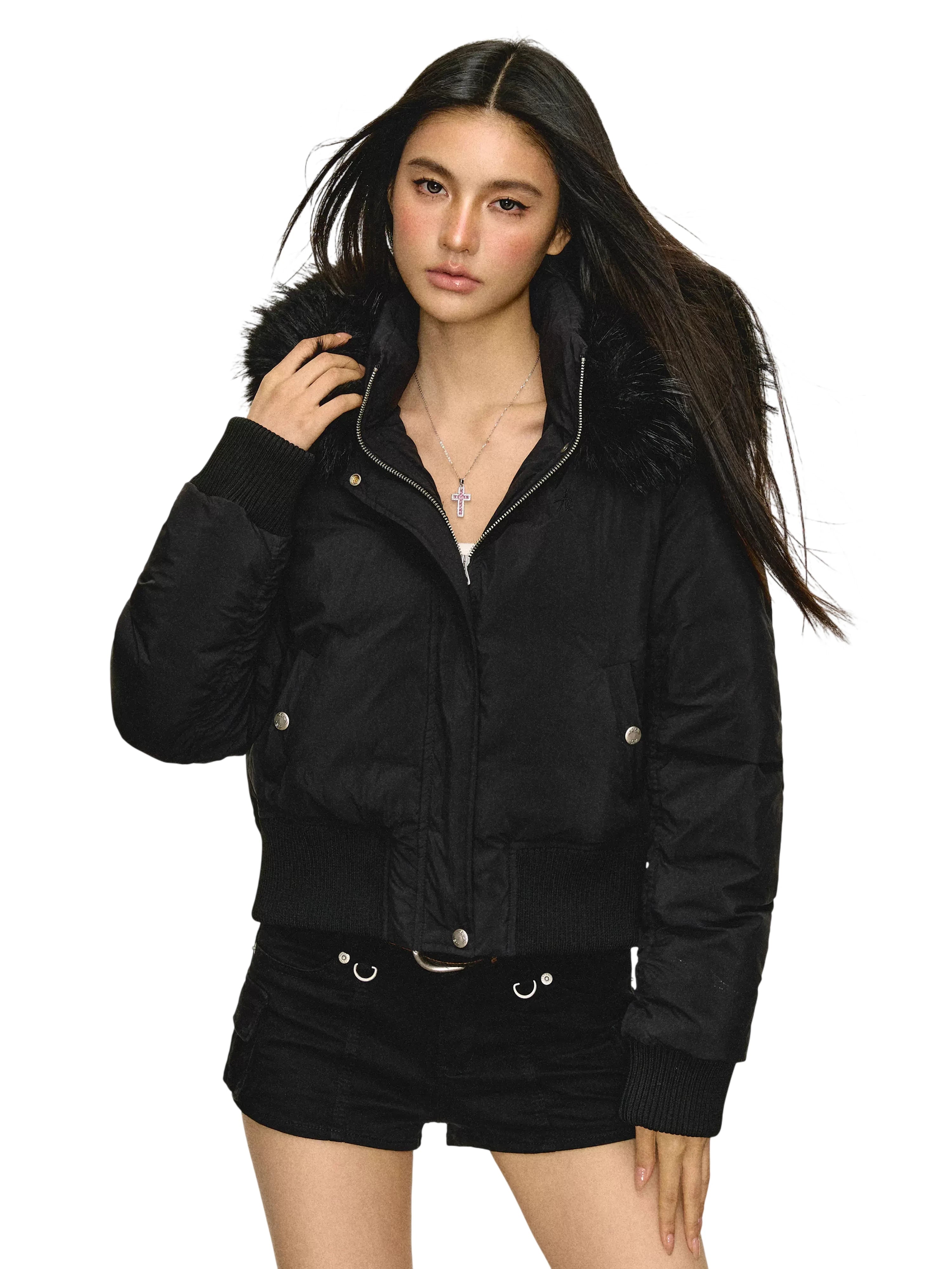 ARISEISM Women's Short Padded Jacket with Detachable Faux Fur Collar