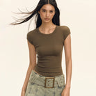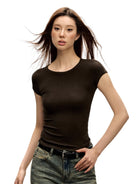 Elevate your casual style with this women's slim fit crew neck t-shirt, designed for the 2025 summer season. Made from a soft and stretchy fabric, it offers a flattering and comfortable fit. The short sleeves and regular shoulders provide a timeless silhouette that's perfect for everyday wear. Available in a variety of solid color options including white, grey, black, and brown, this t-shirt is a versatile addition to any wardrobe.