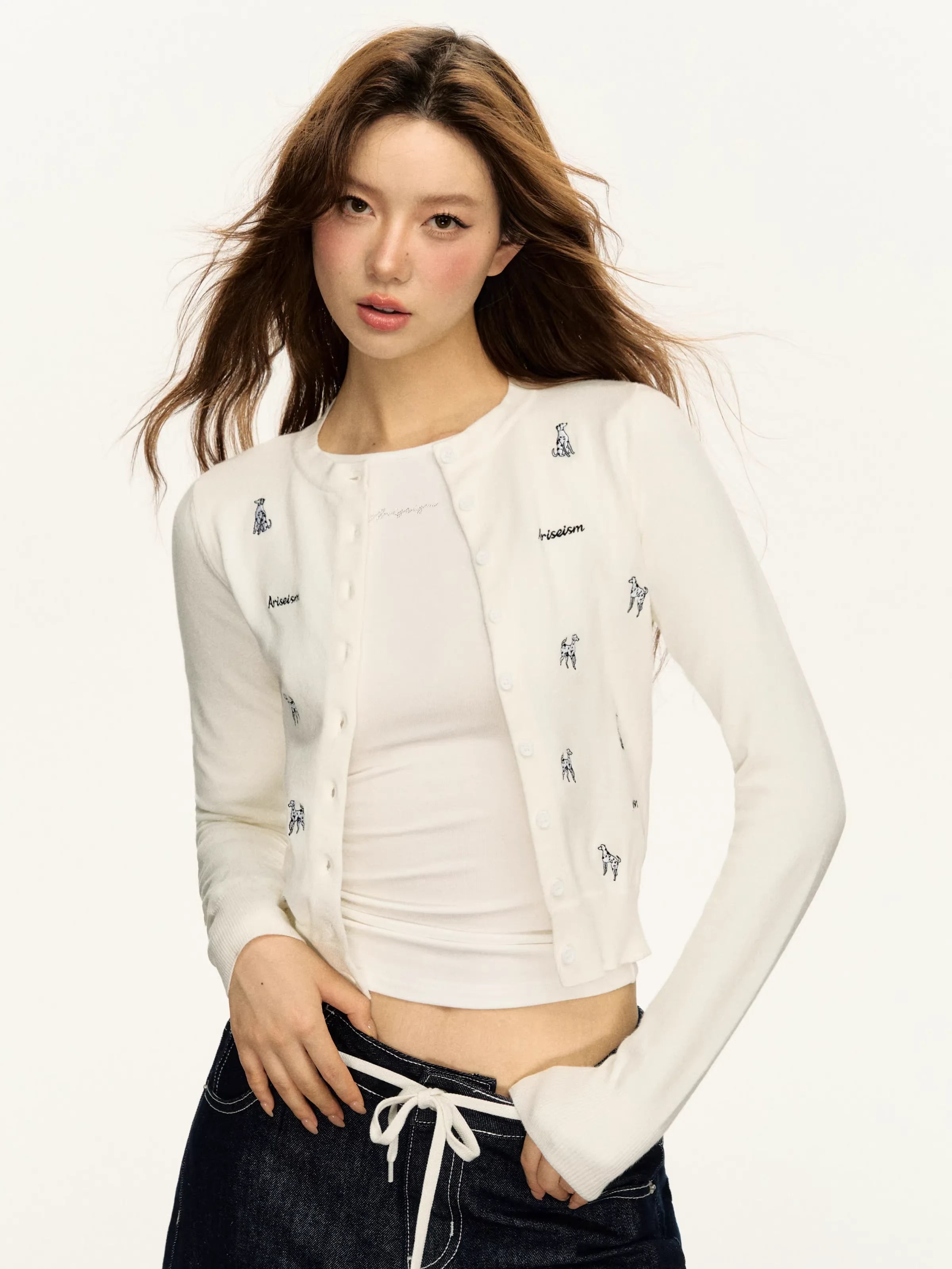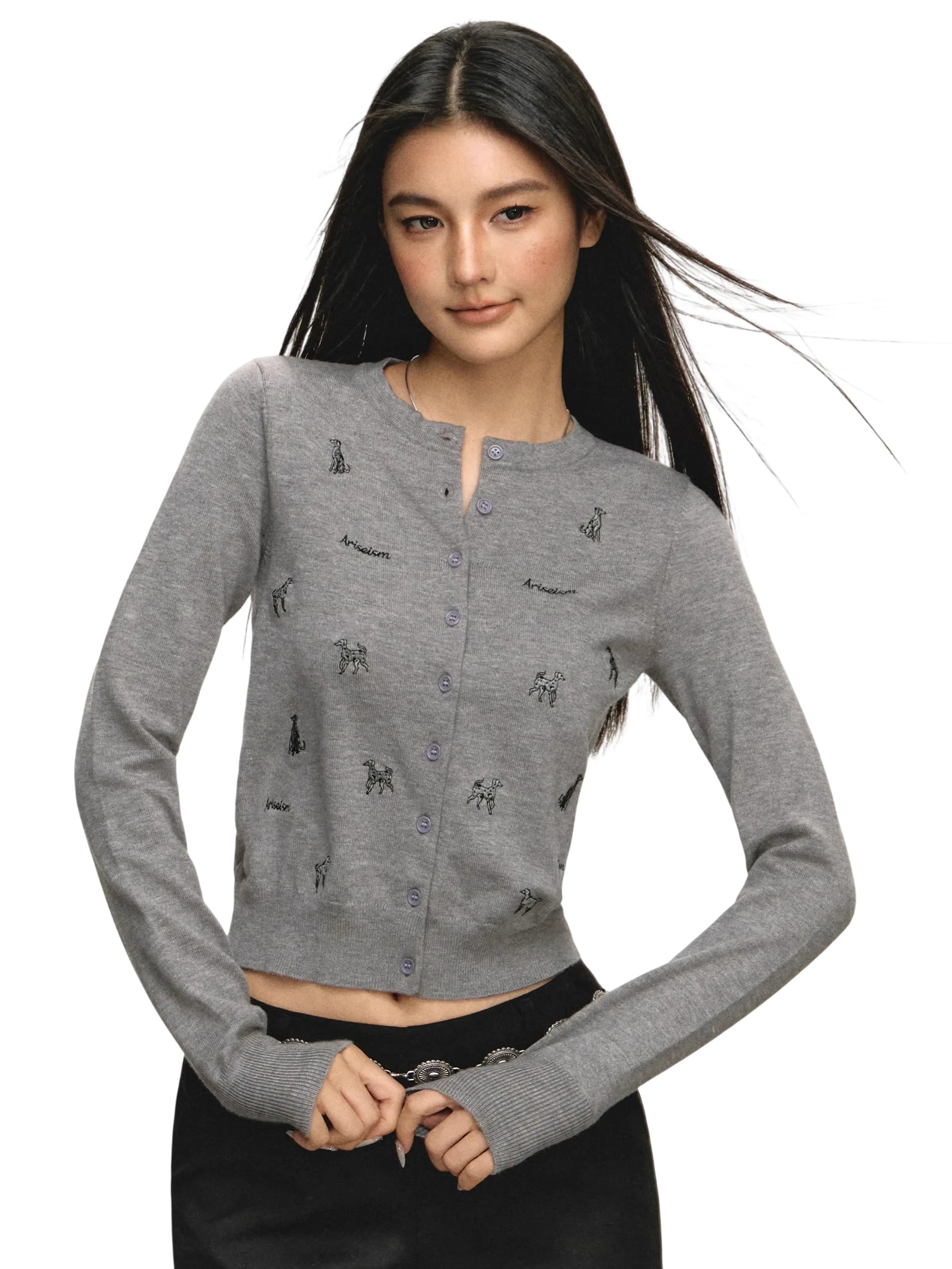 ARISEISM Women's Slim Fit Embroidered Puppy Knit Cardigan