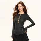 ARISEISM Women's Slim Fit Hollow Ribbed Knit Long Sleeve Top