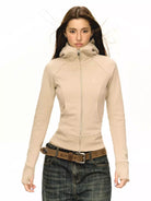 Stay comfortable and stylish with this women's slim fit hooded zip-up sweatshirt, perfect for casual wear, sports, or yoga sessions. Designed with a flattering fitted silhouette and full-length sleeves, it features a soft, cozy material ideal for cooler autumn days.
