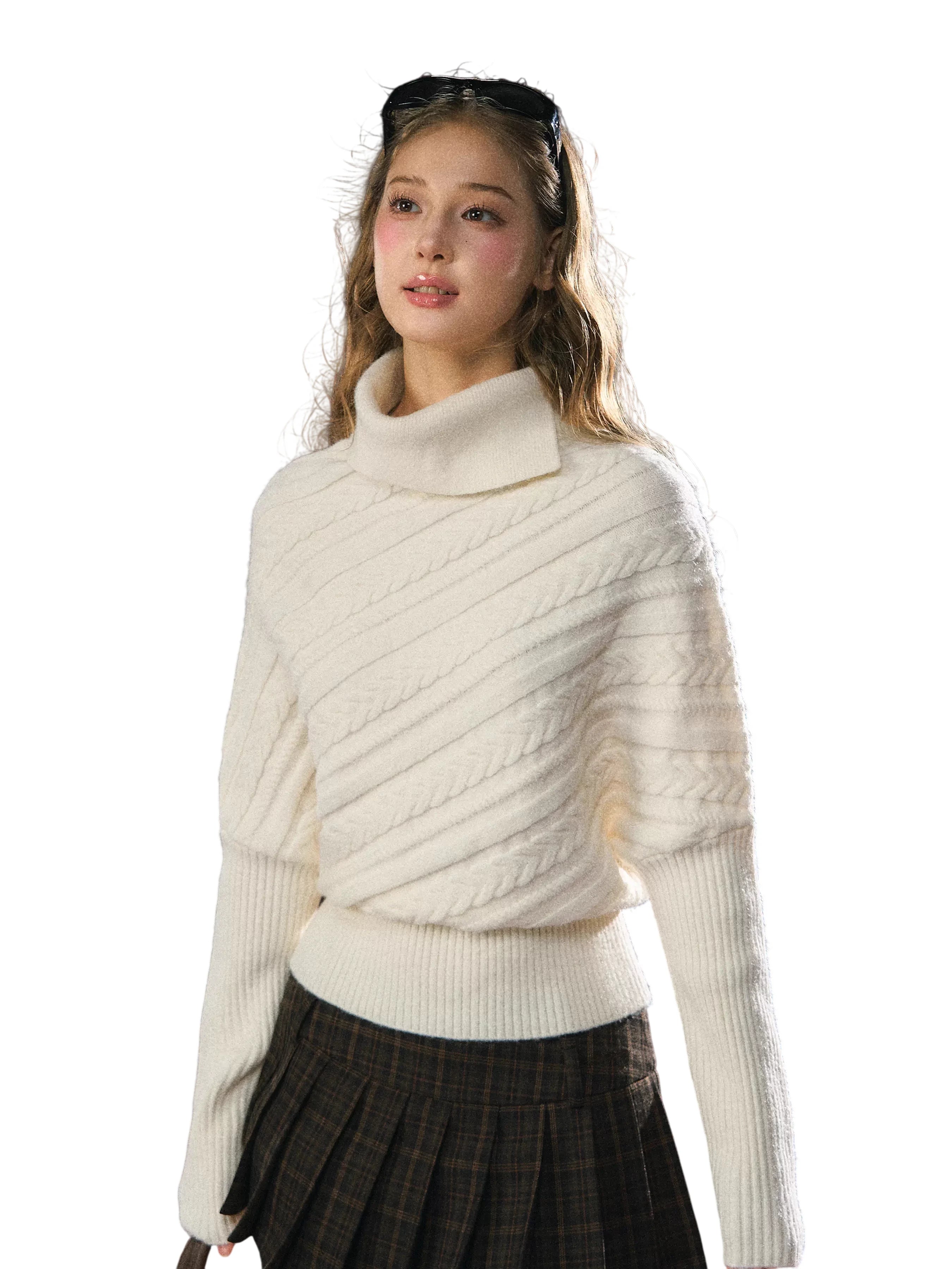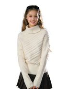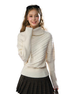Stay warm and stylish with this women's thick knit turtleneck sweater, designed for the autumn and winter seasons. Featuring a high neckline and batwing sleeves, this off-white pullover offers a cozy, relaxed fit. The diagonal ribbed pattern adds texture and visual interest, while the ribbed cuffs and hem provide a structured finish. Perfect for casual outings or layering on chilly days, this elegant sweater combines comfort with timeless style.