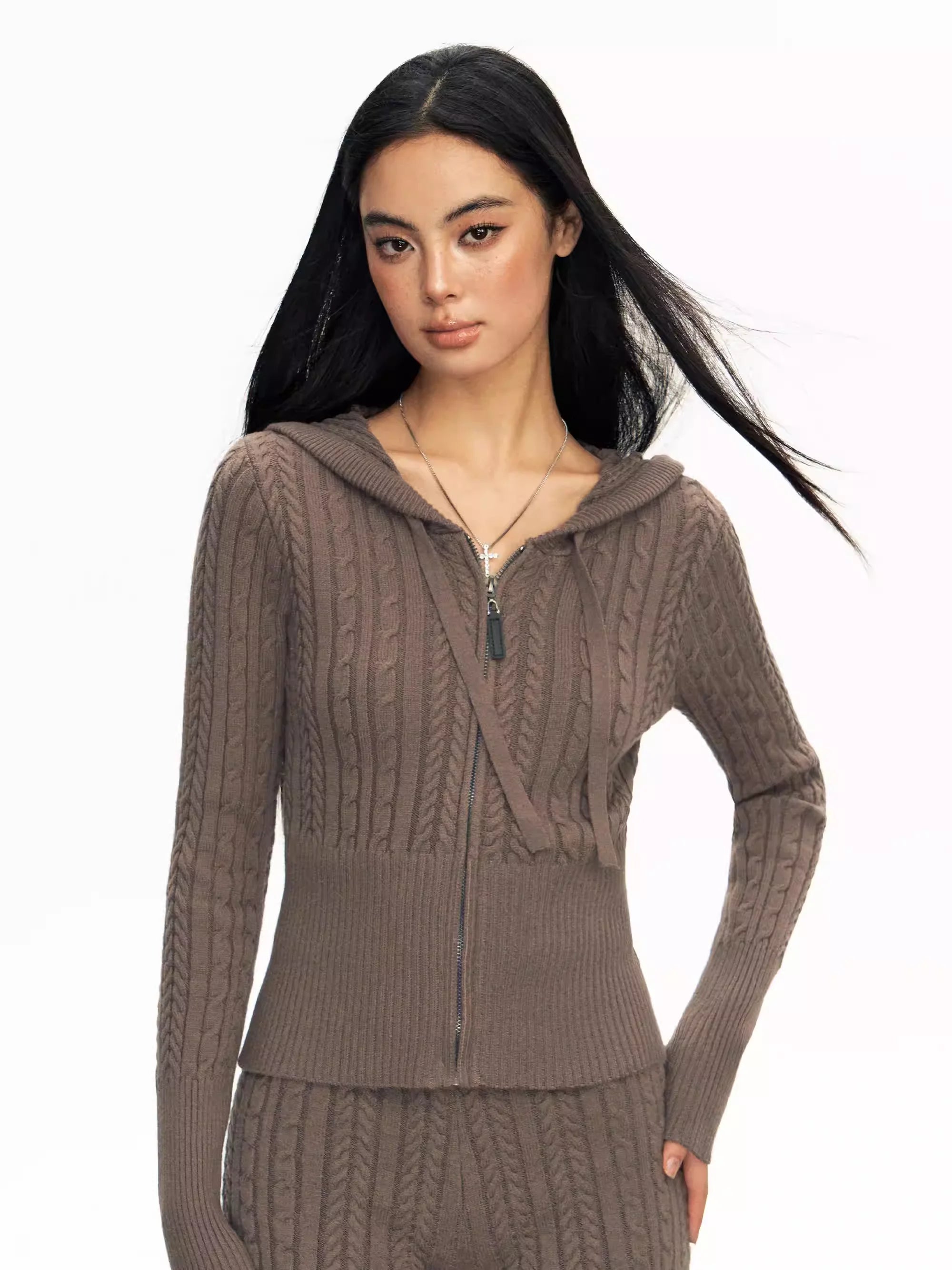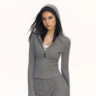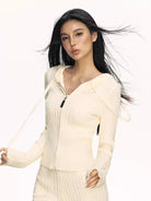 Stay cozy and stylish this autumn with this women's vintage-style knit cardigan. Designed with a ribbed texture and a form-fitting silhouette, this zip-up hoodie features a comfortable hood, long sleeves, and a front zipper that extends to the chest. The stretchy knit fabric ensures a soft and snug fit, perfect for layering over your favorite innerwear.