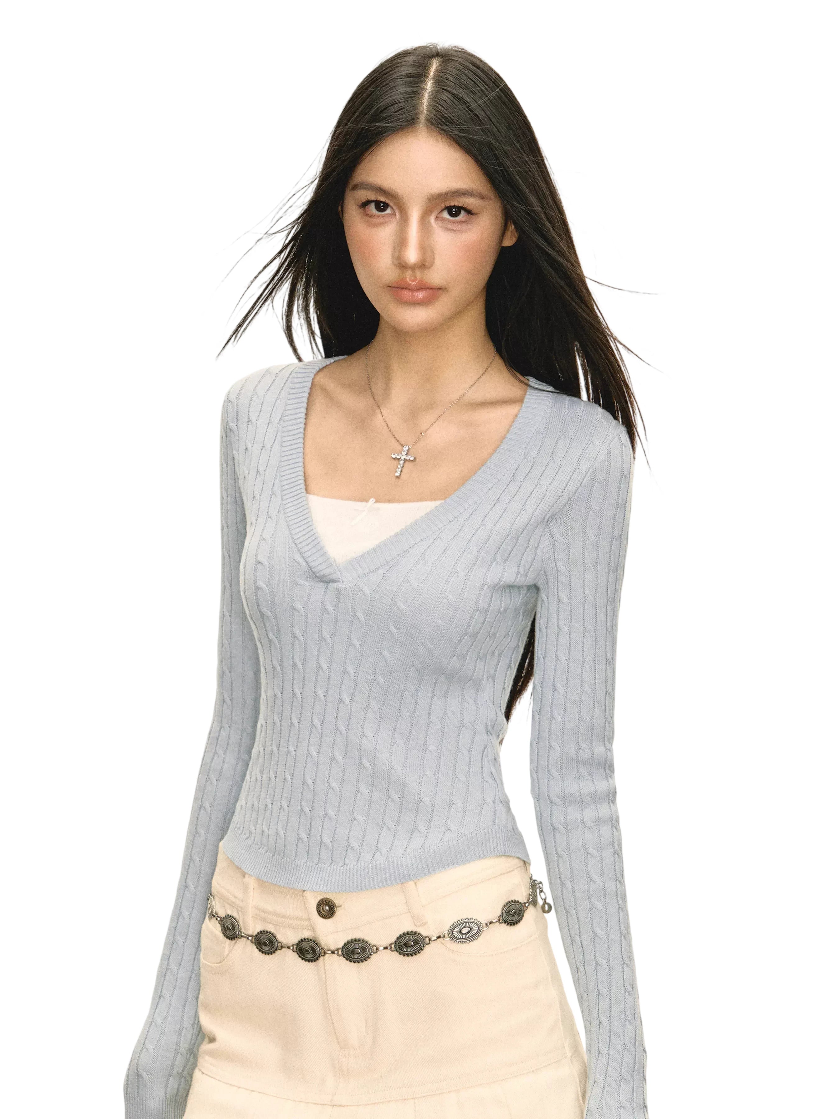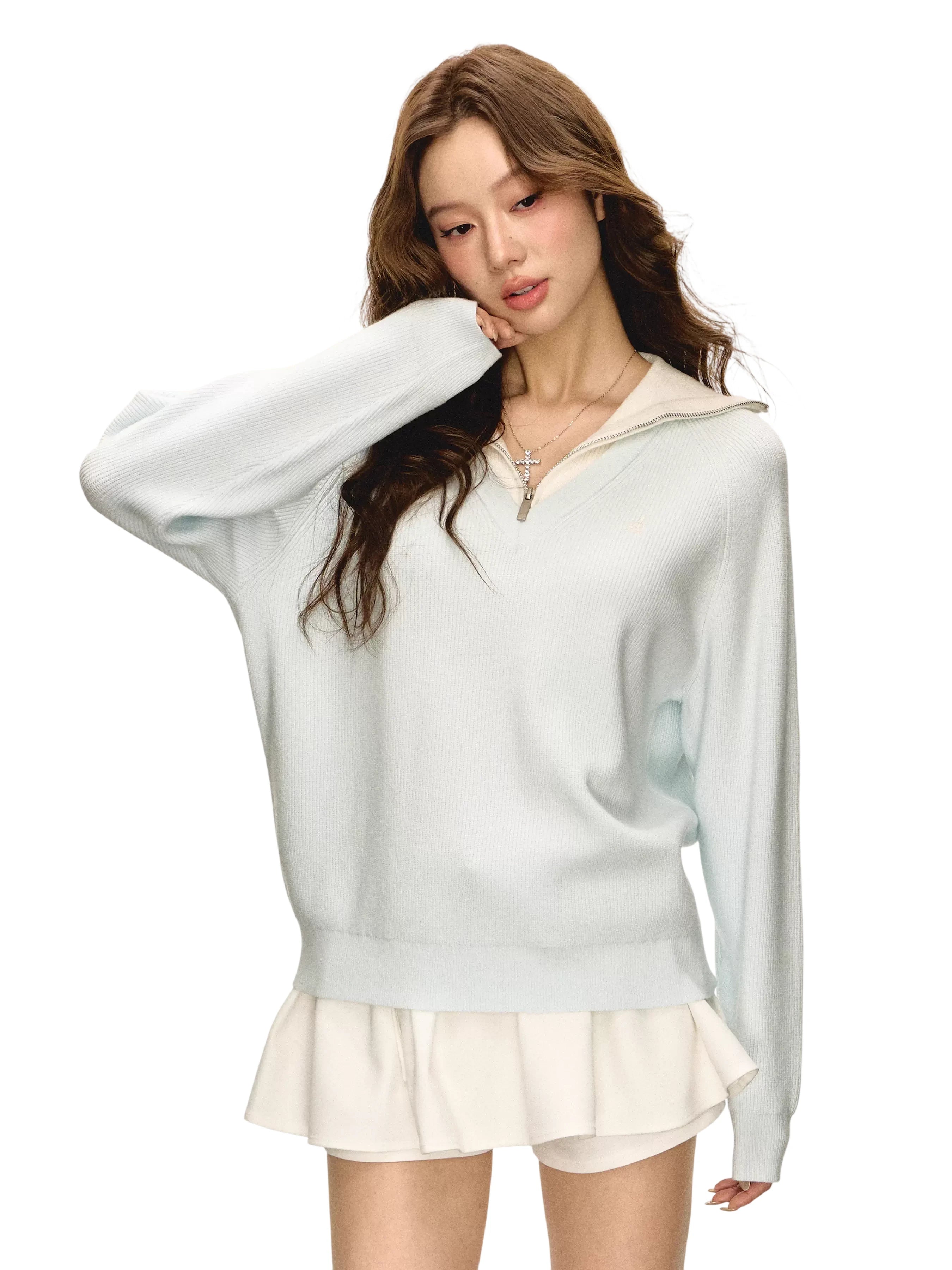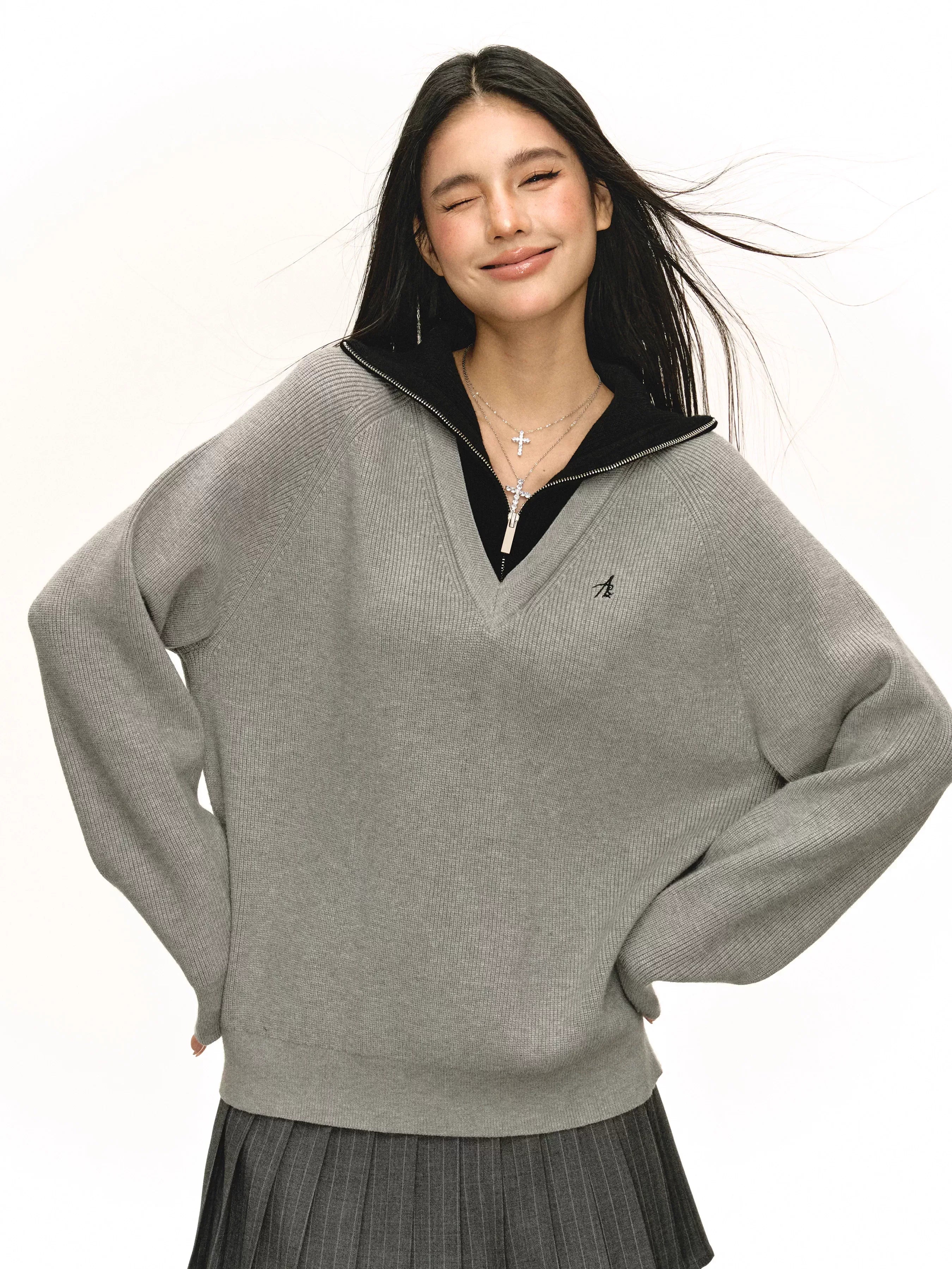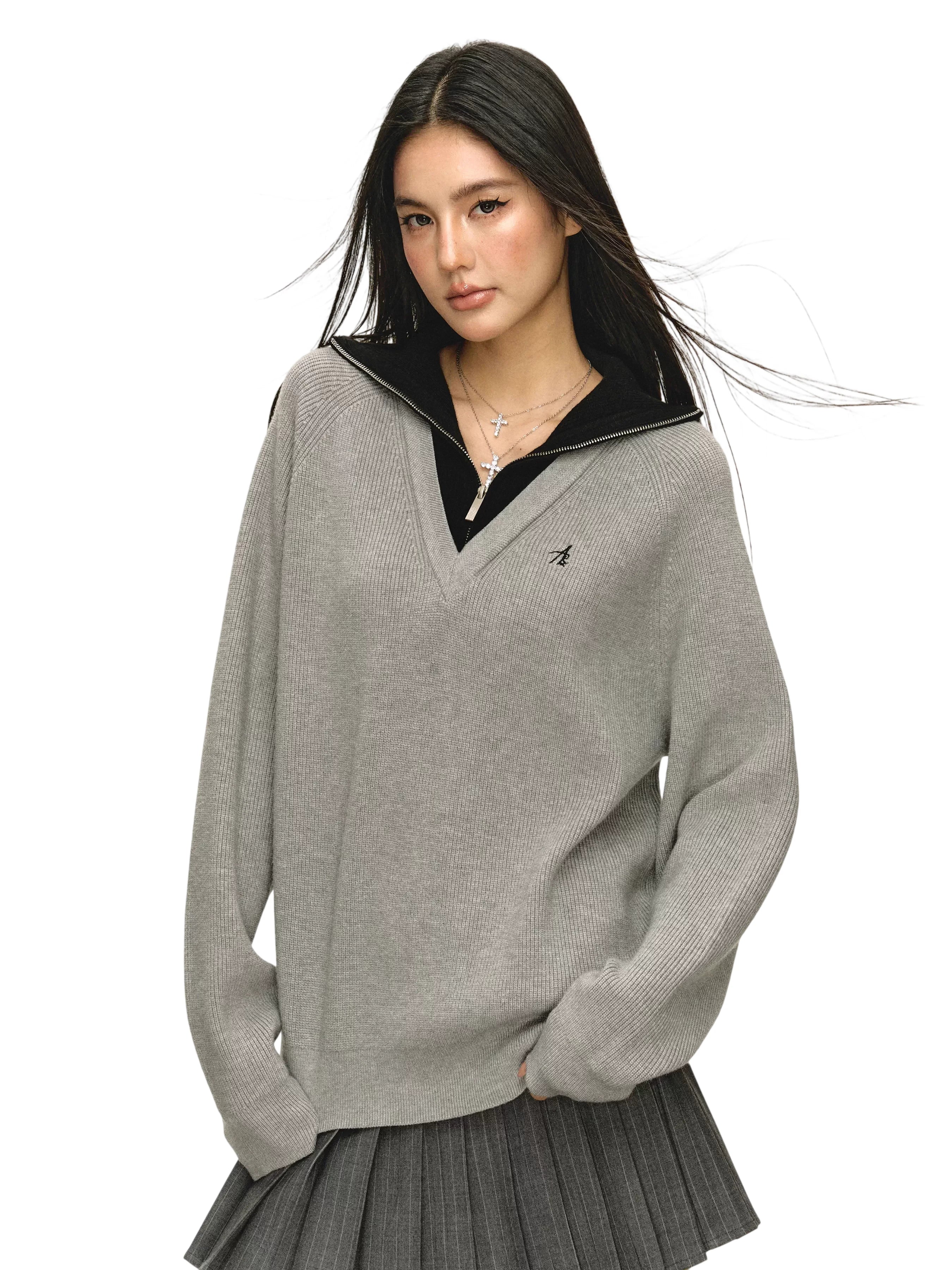 ARISEISM Vintage Style Loose Fit V-Neck Sweater for Women