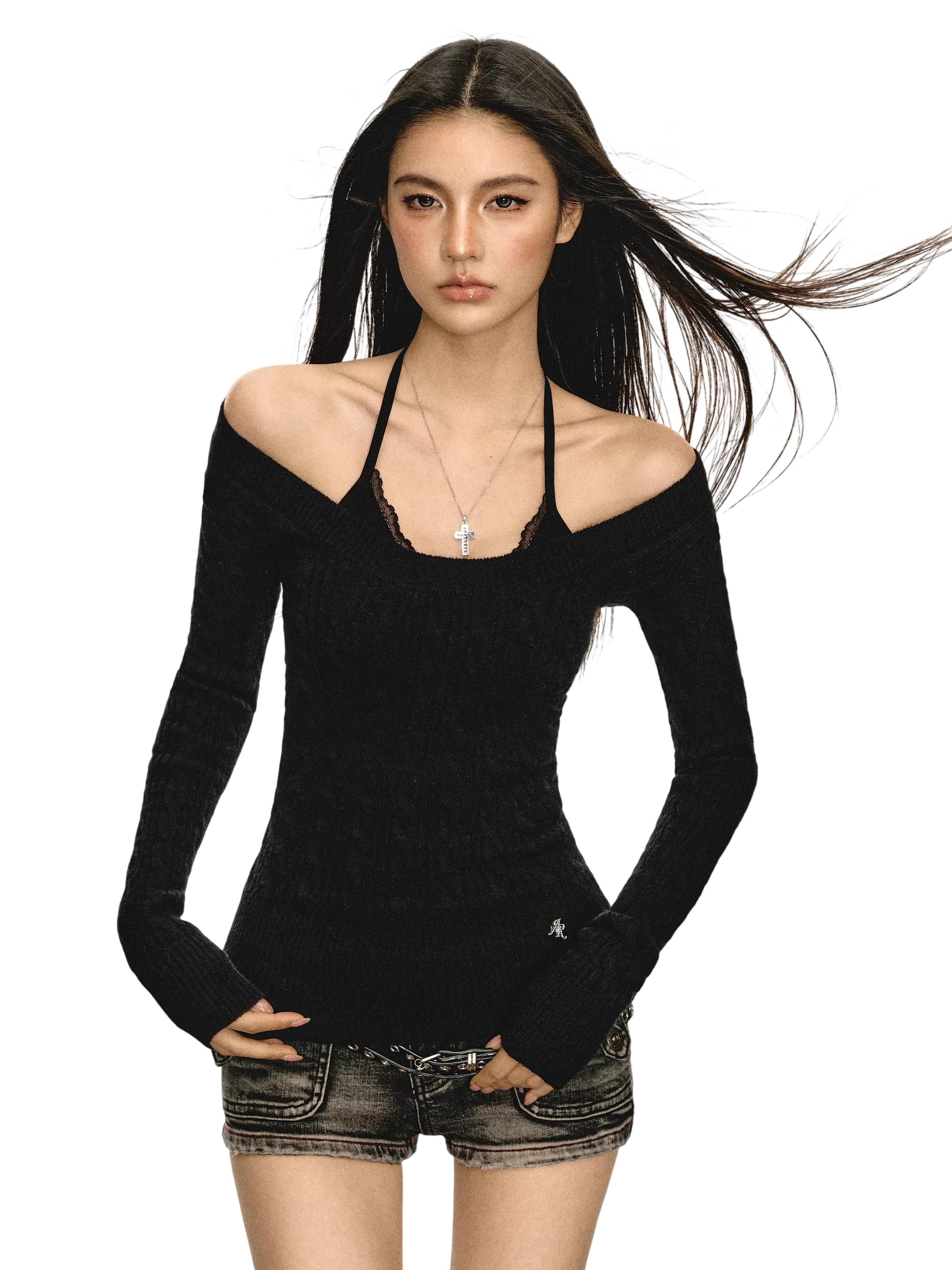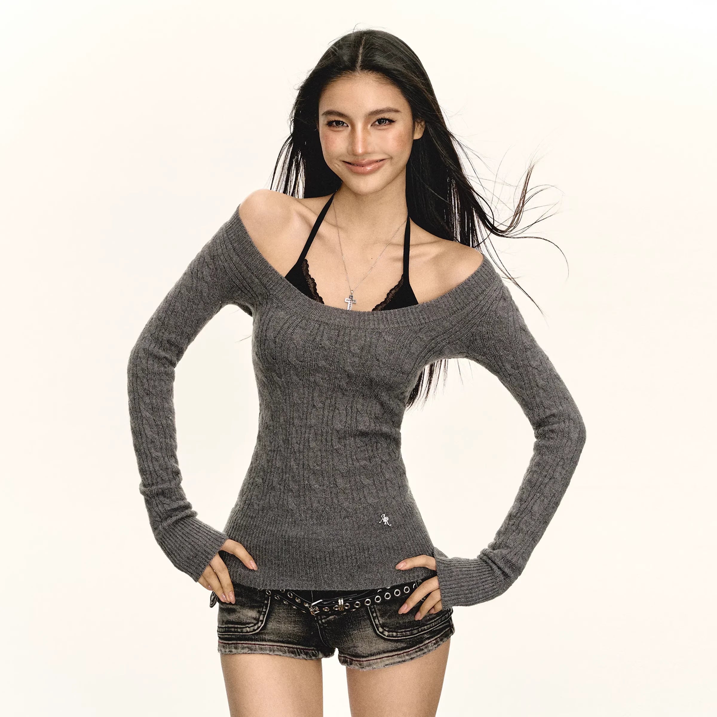 ARISEISM Women's Slim Fit Cable Knit Off-Shoulder Sweater