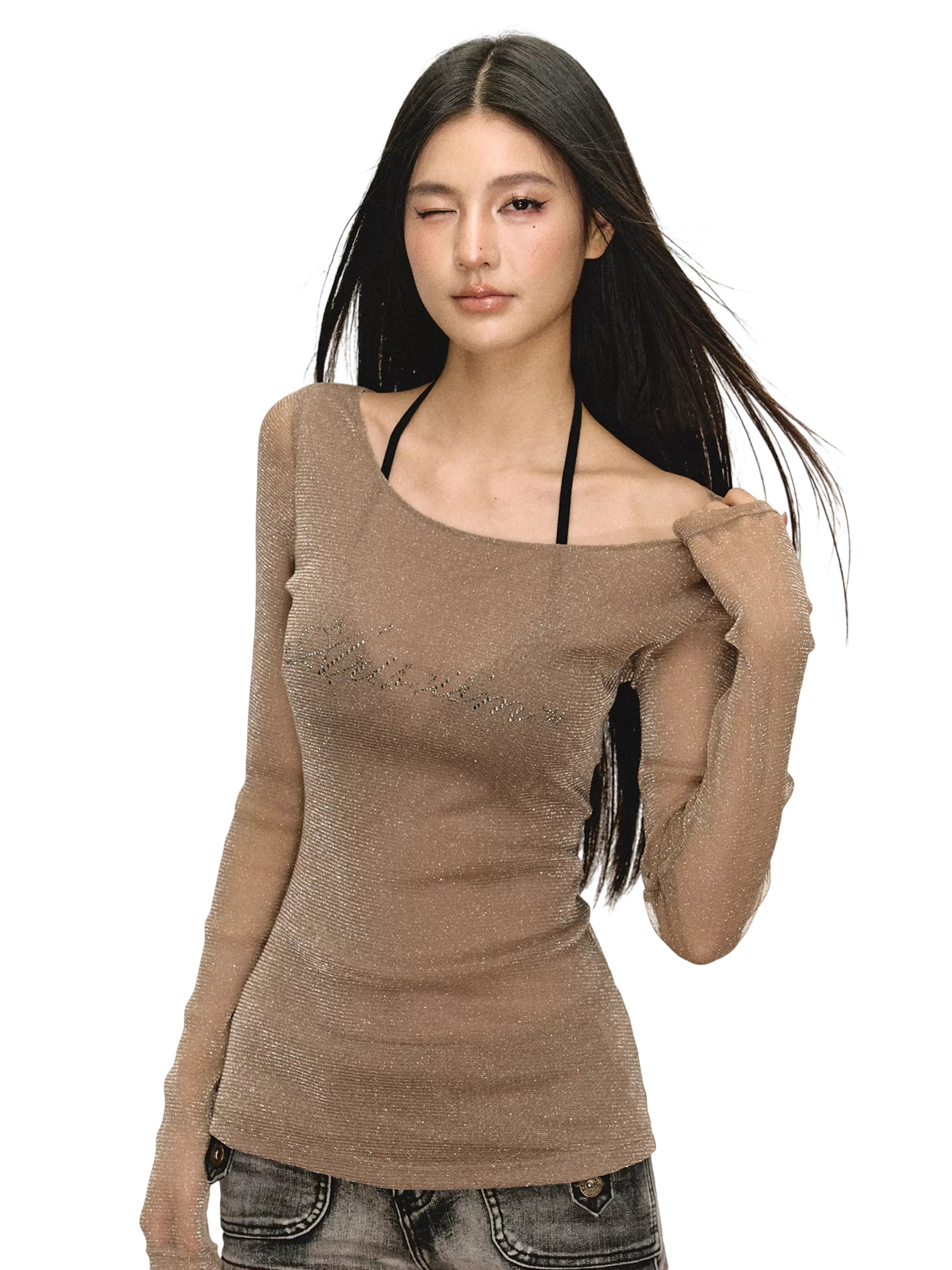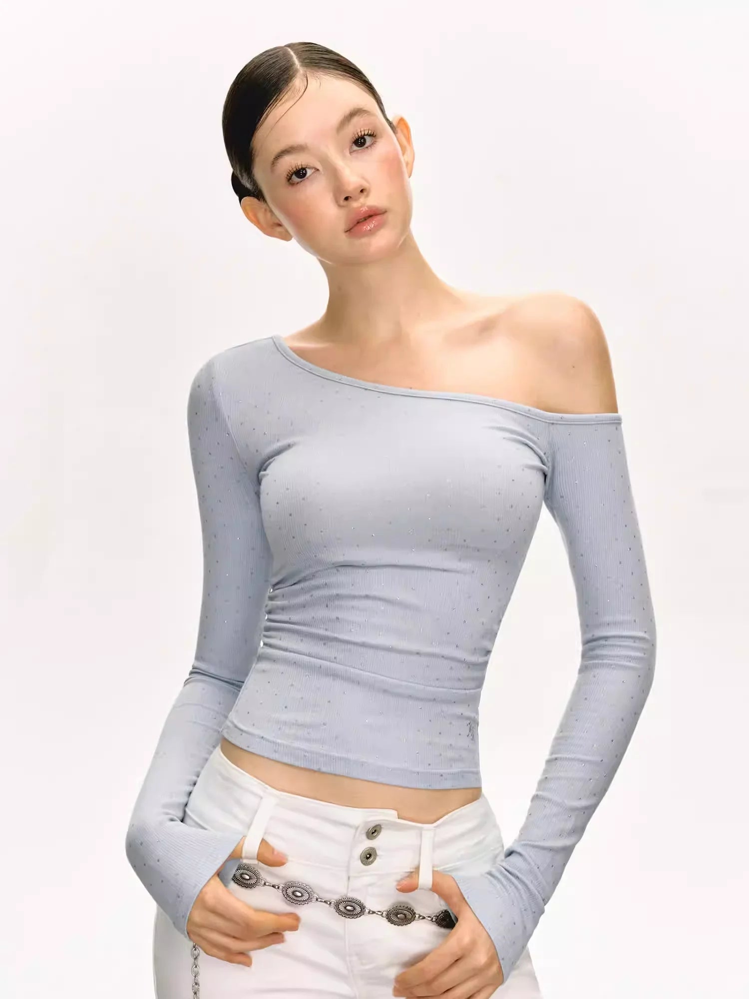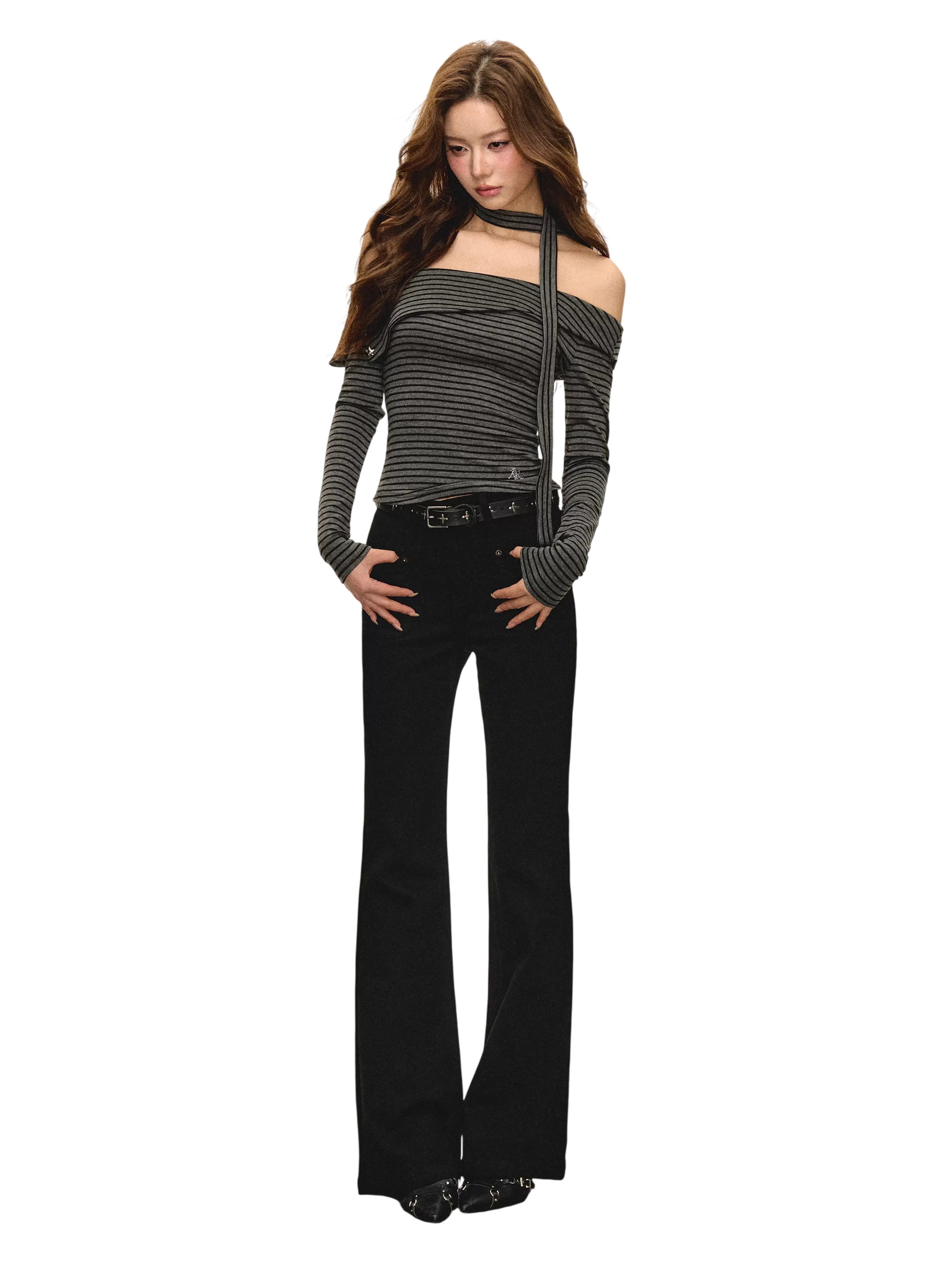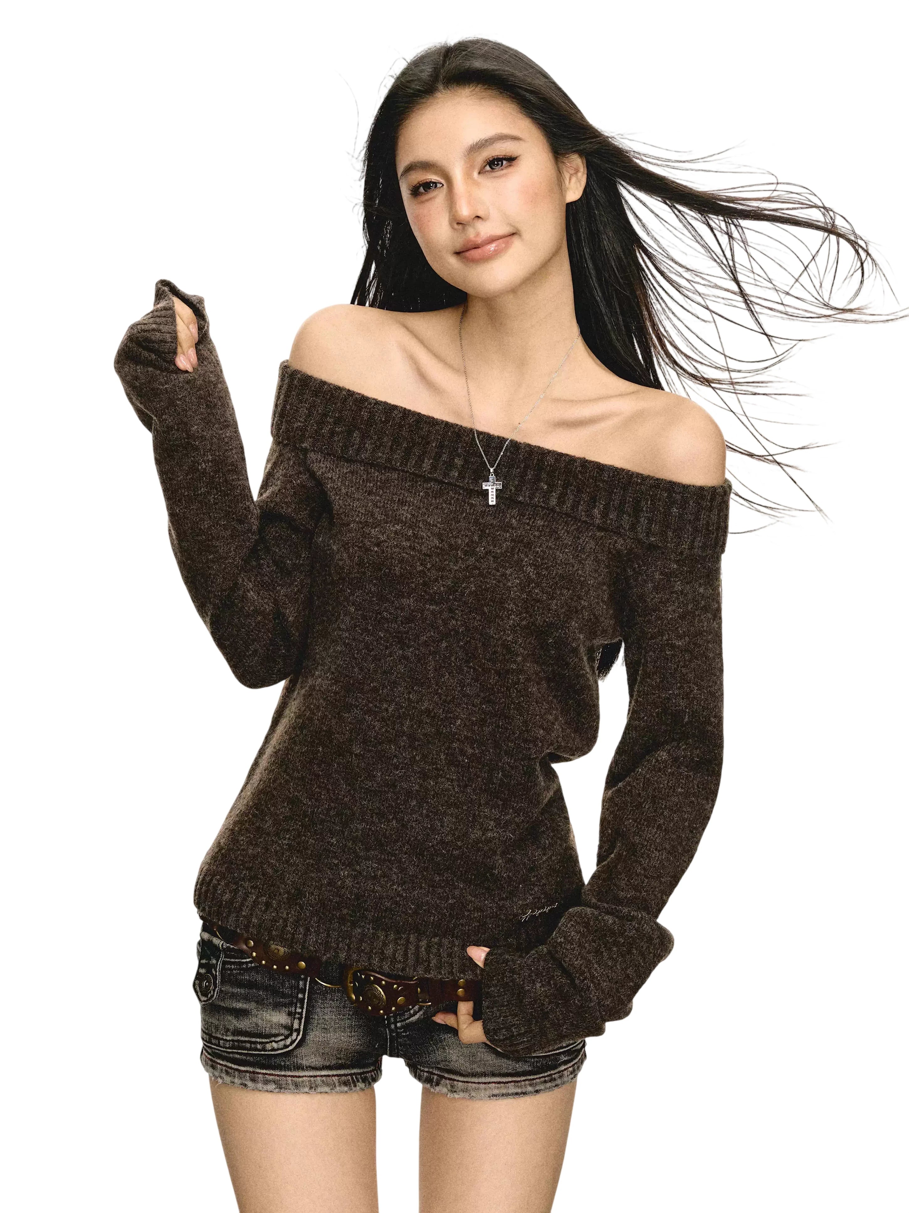 ARISEISM Women's Off-Shoulder Long Sleeve Knit Top with Choker Detail