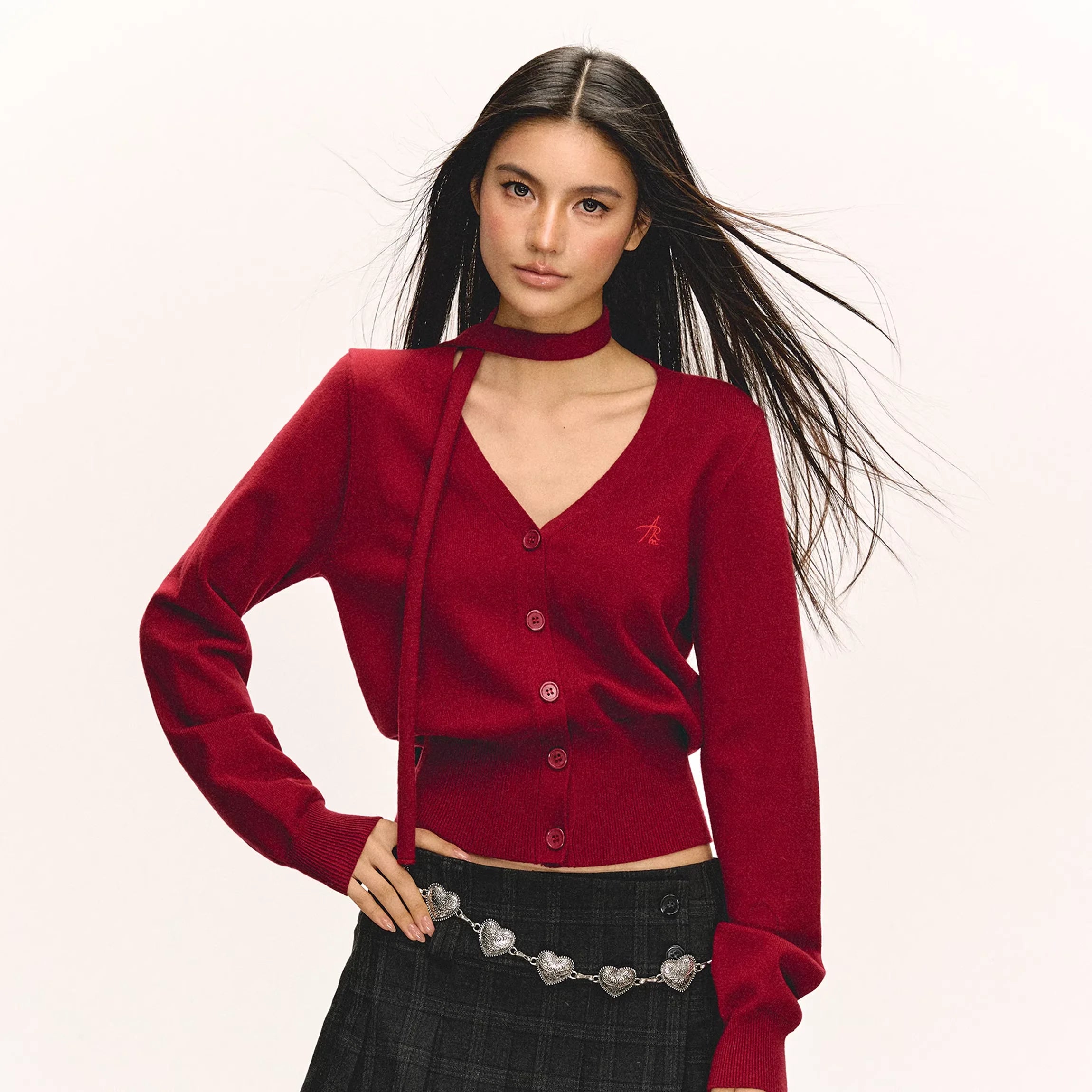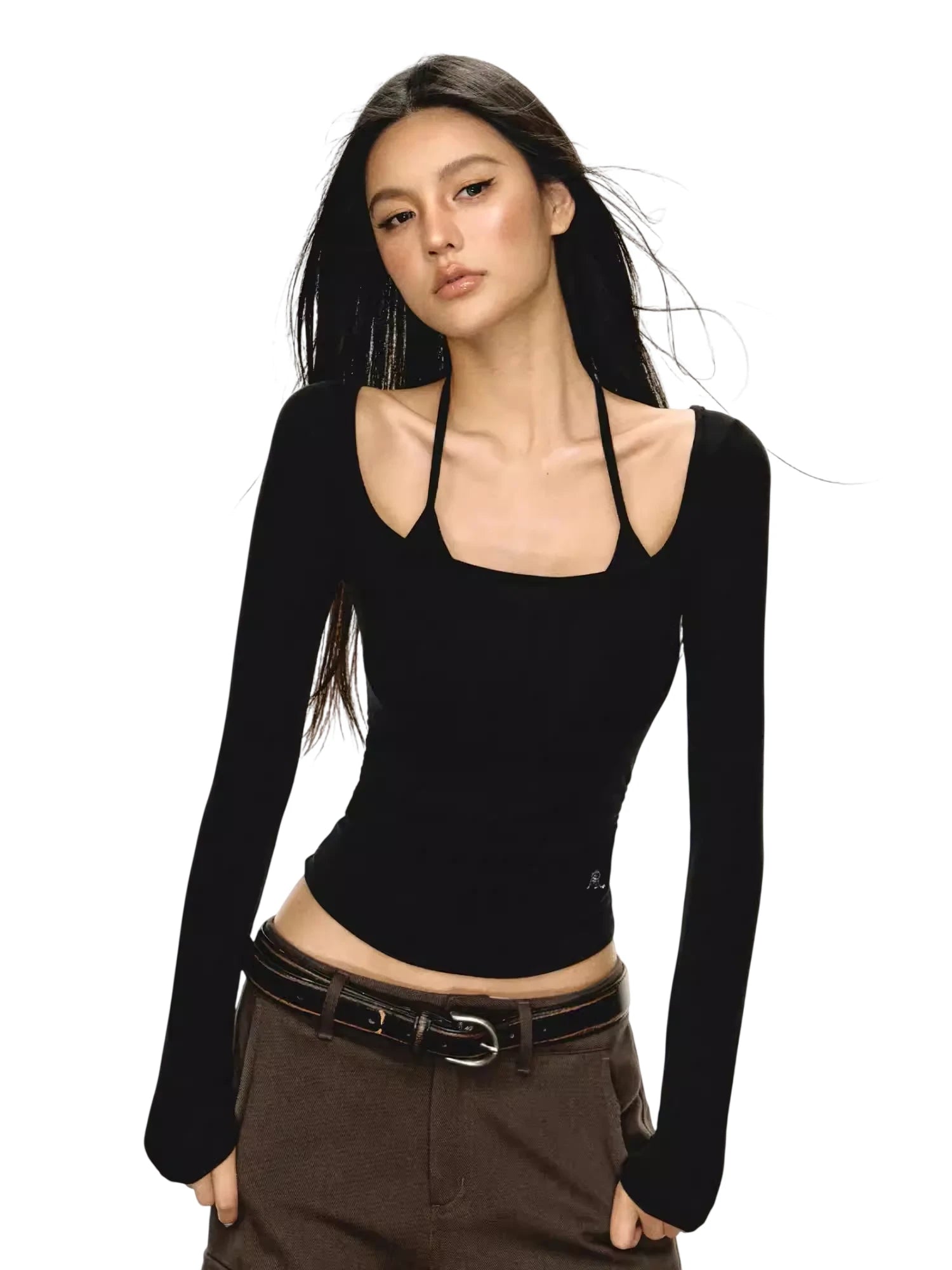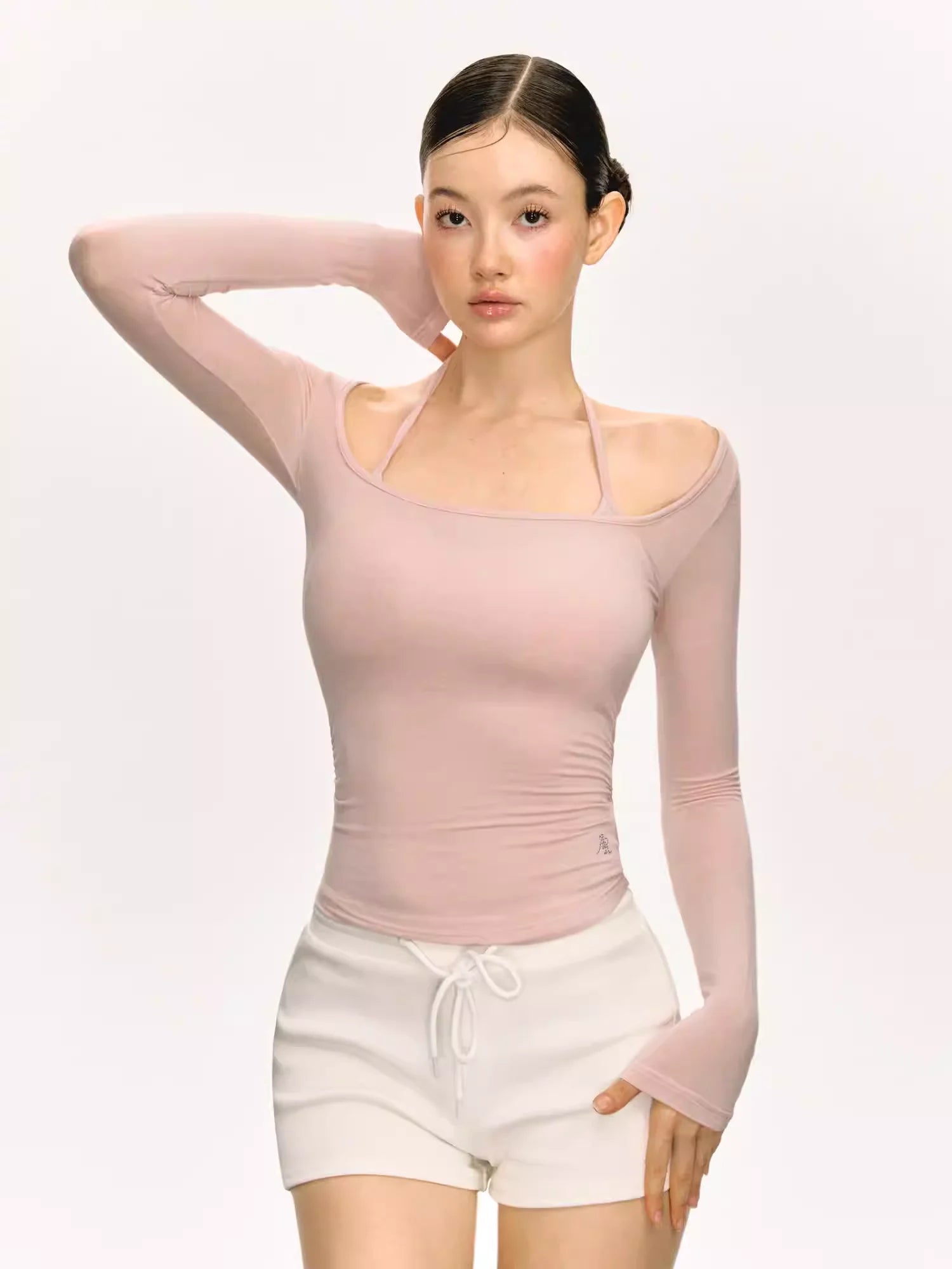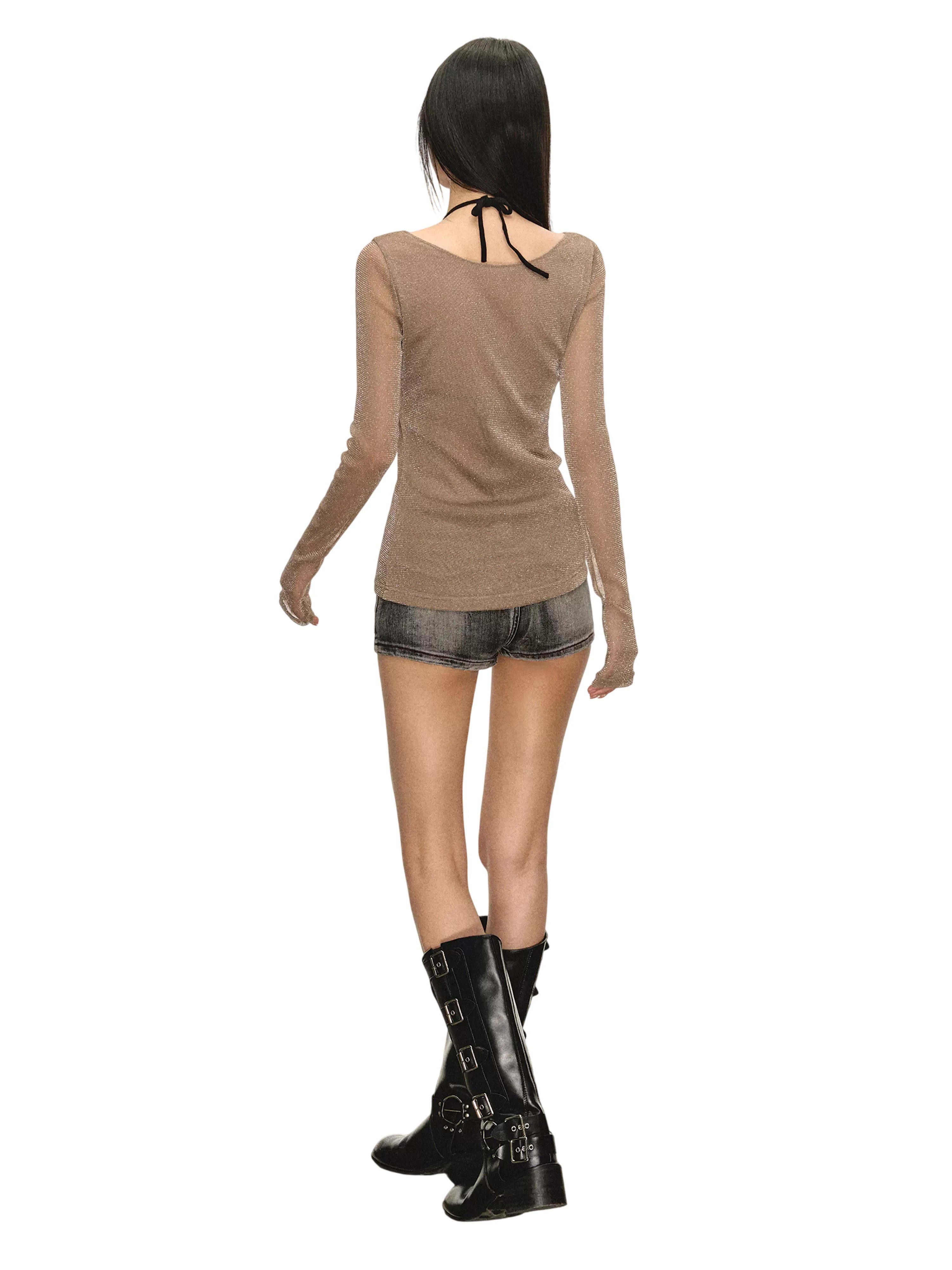 ARISEISM Women's Off-Shoulder Long Sleeve Knit Top with Choker Detail
