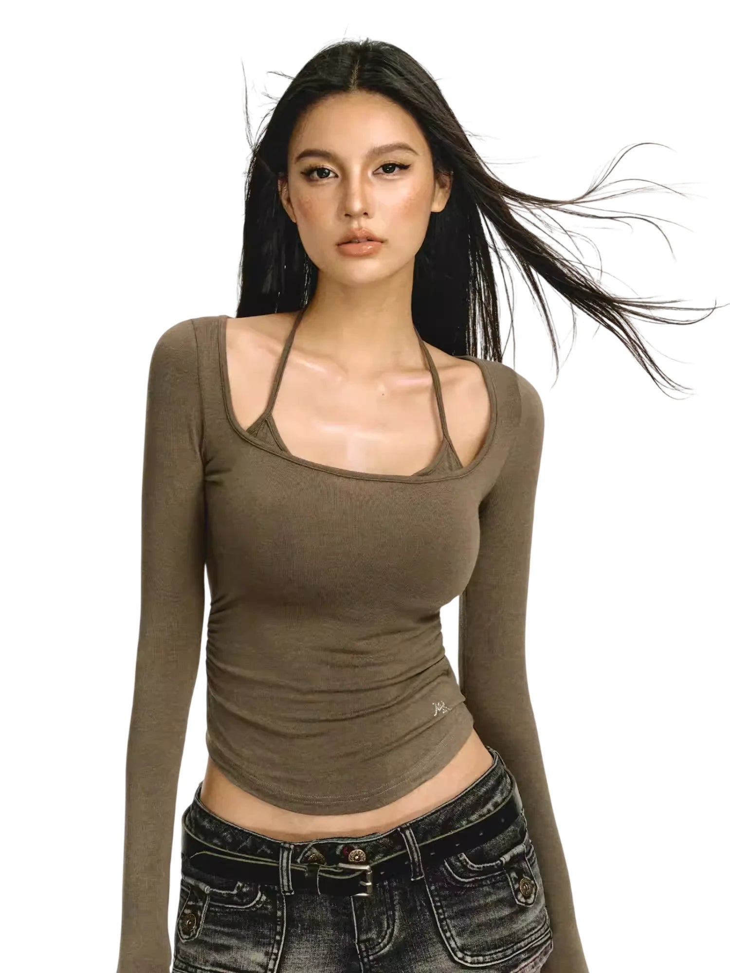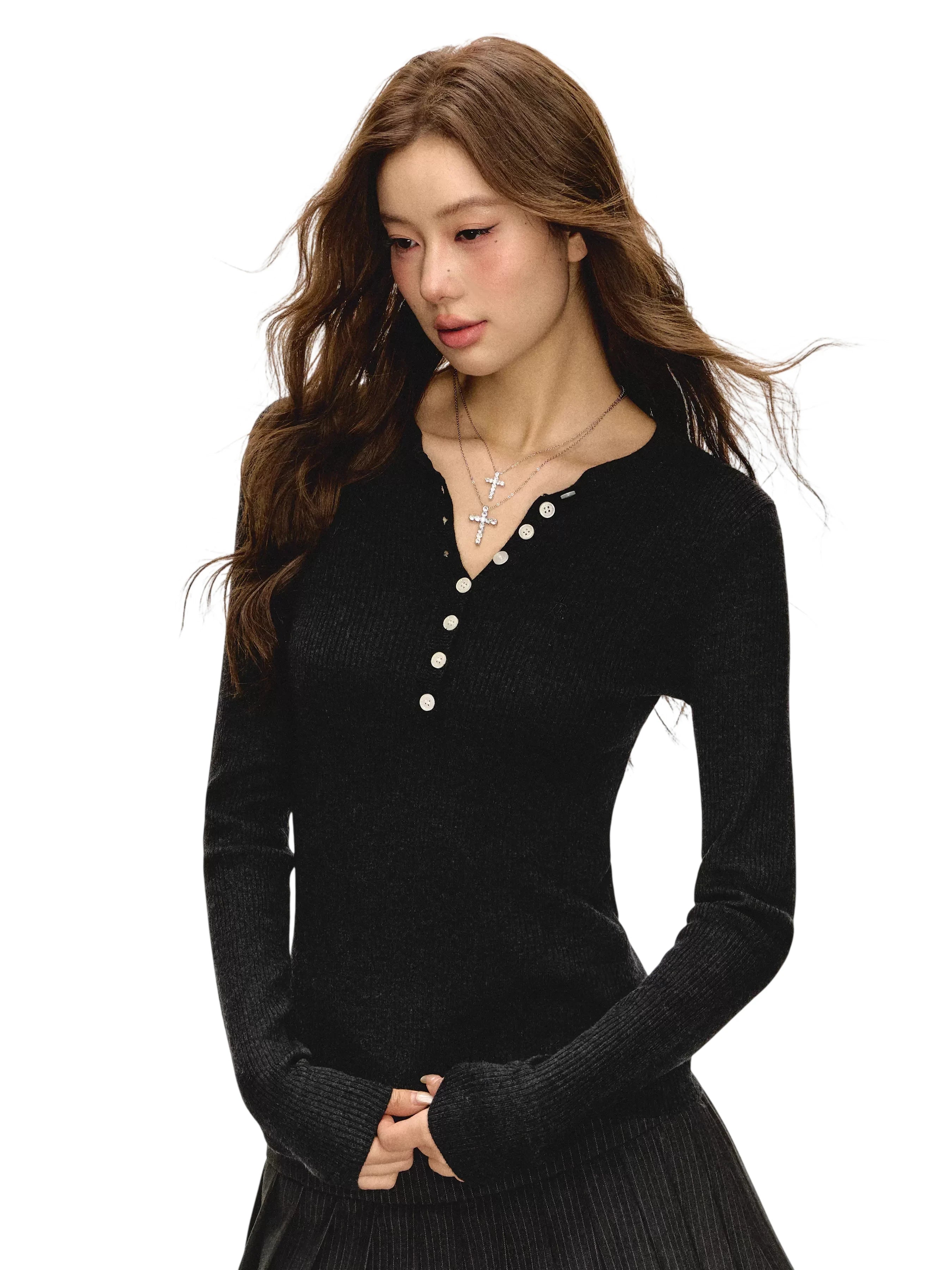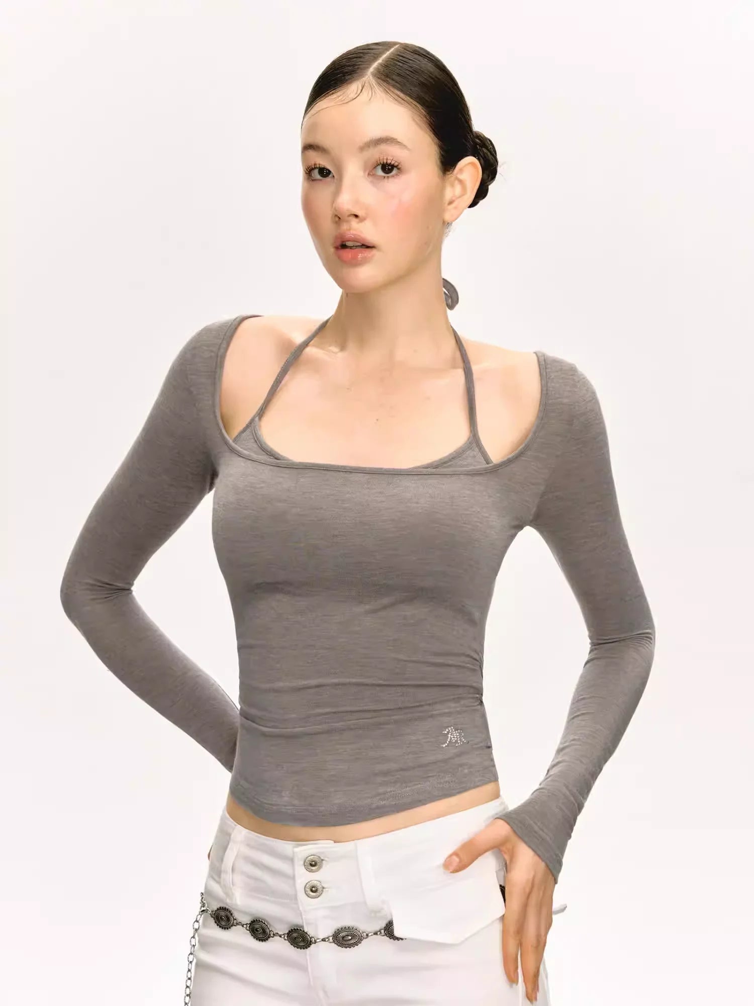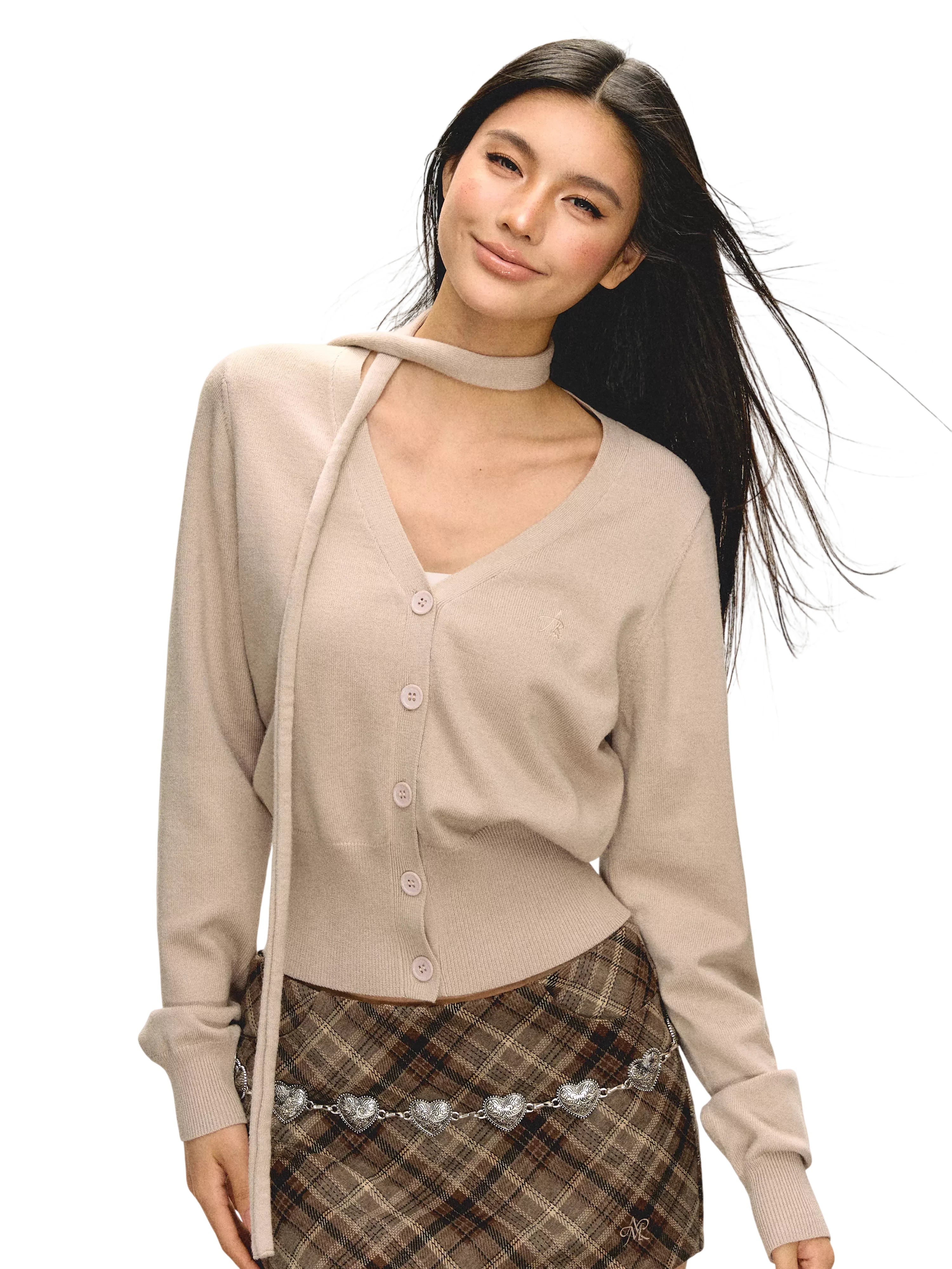 ARISEISM Women's Off-Shoulder Long Sleeve Knit Top with Choker Detail