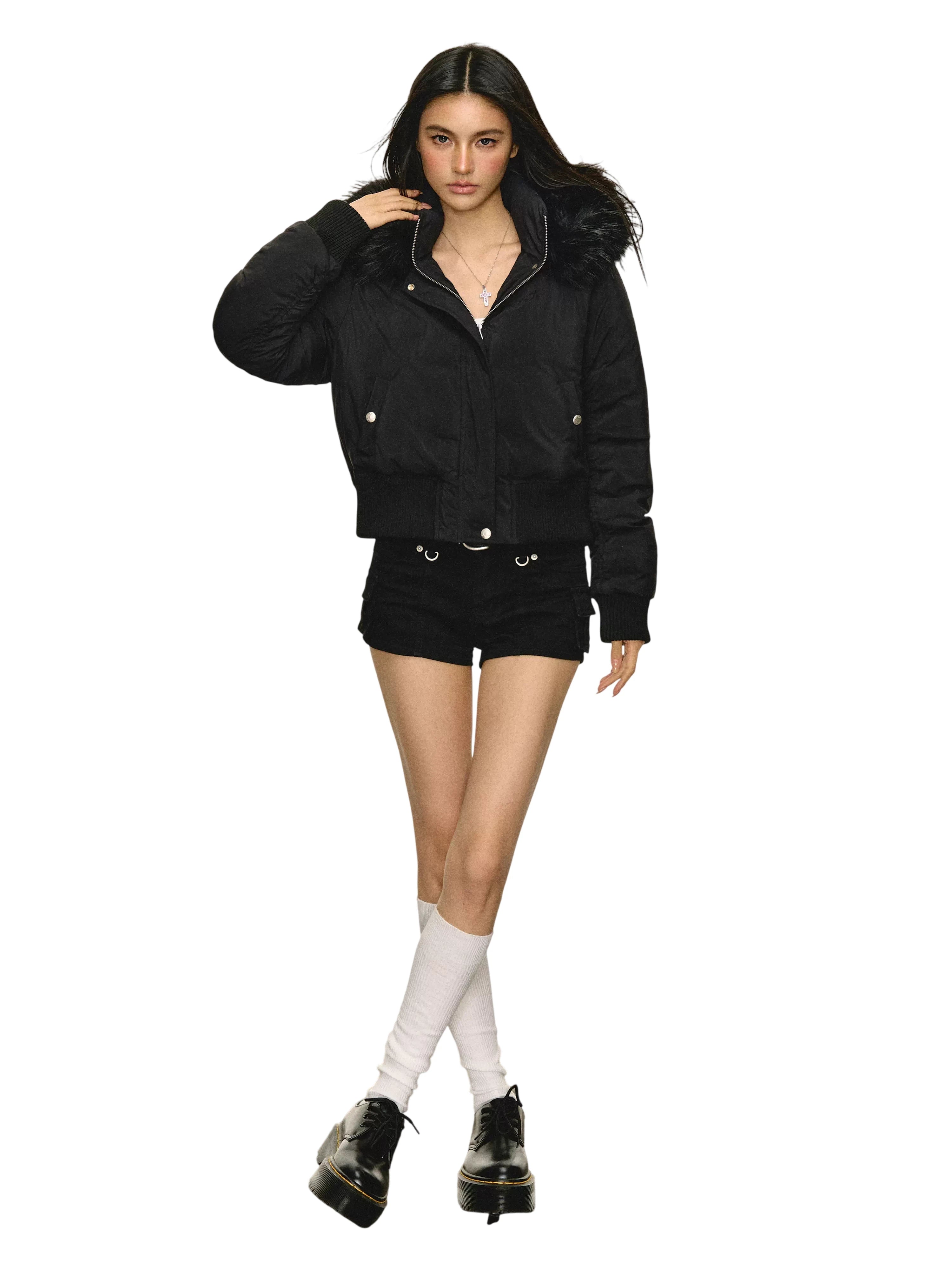 ARISEISM Women's Short Padded Jacket with Detachable Faux Fur Collar