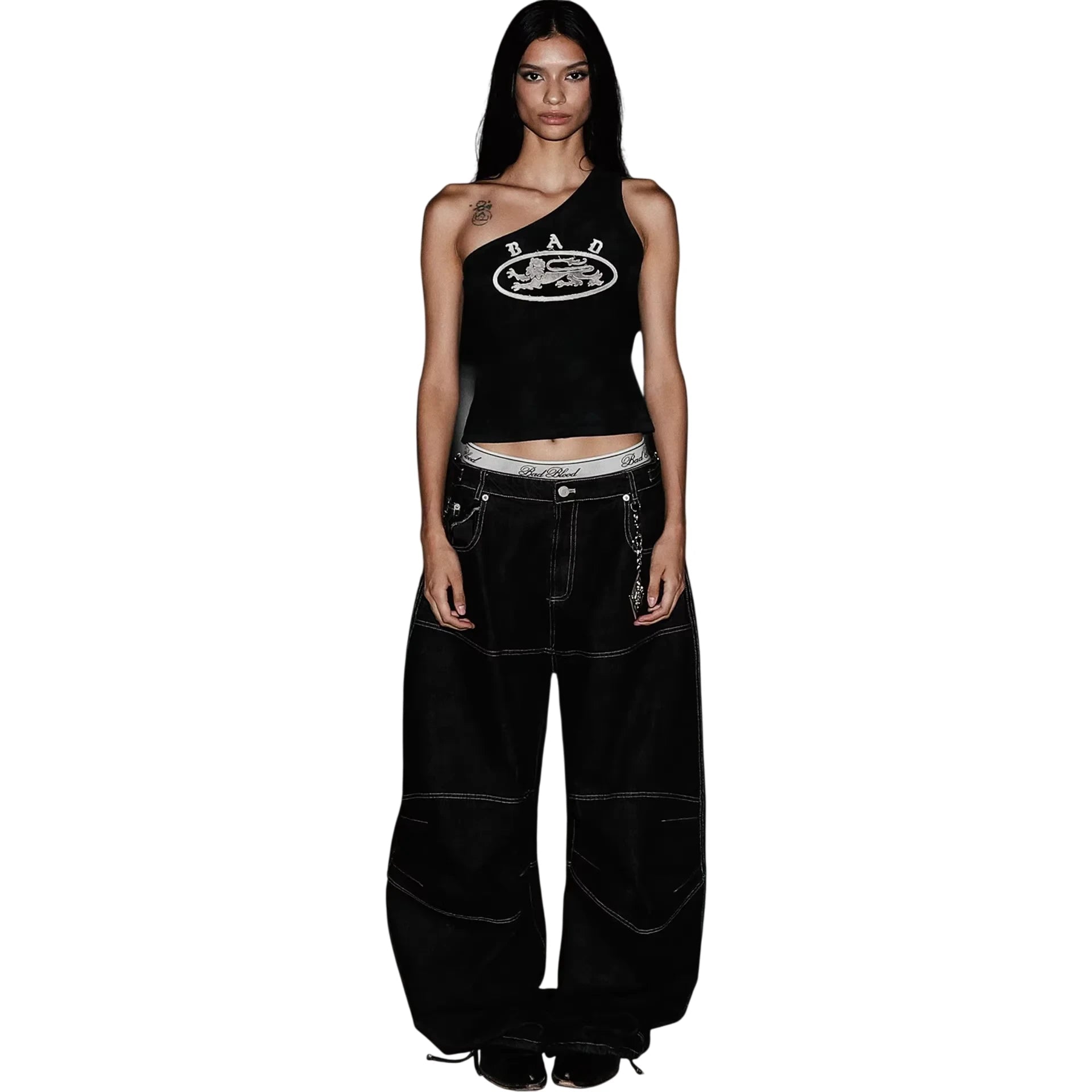 BADSEED Denim Black Wide-Leg Streetwear Pants