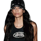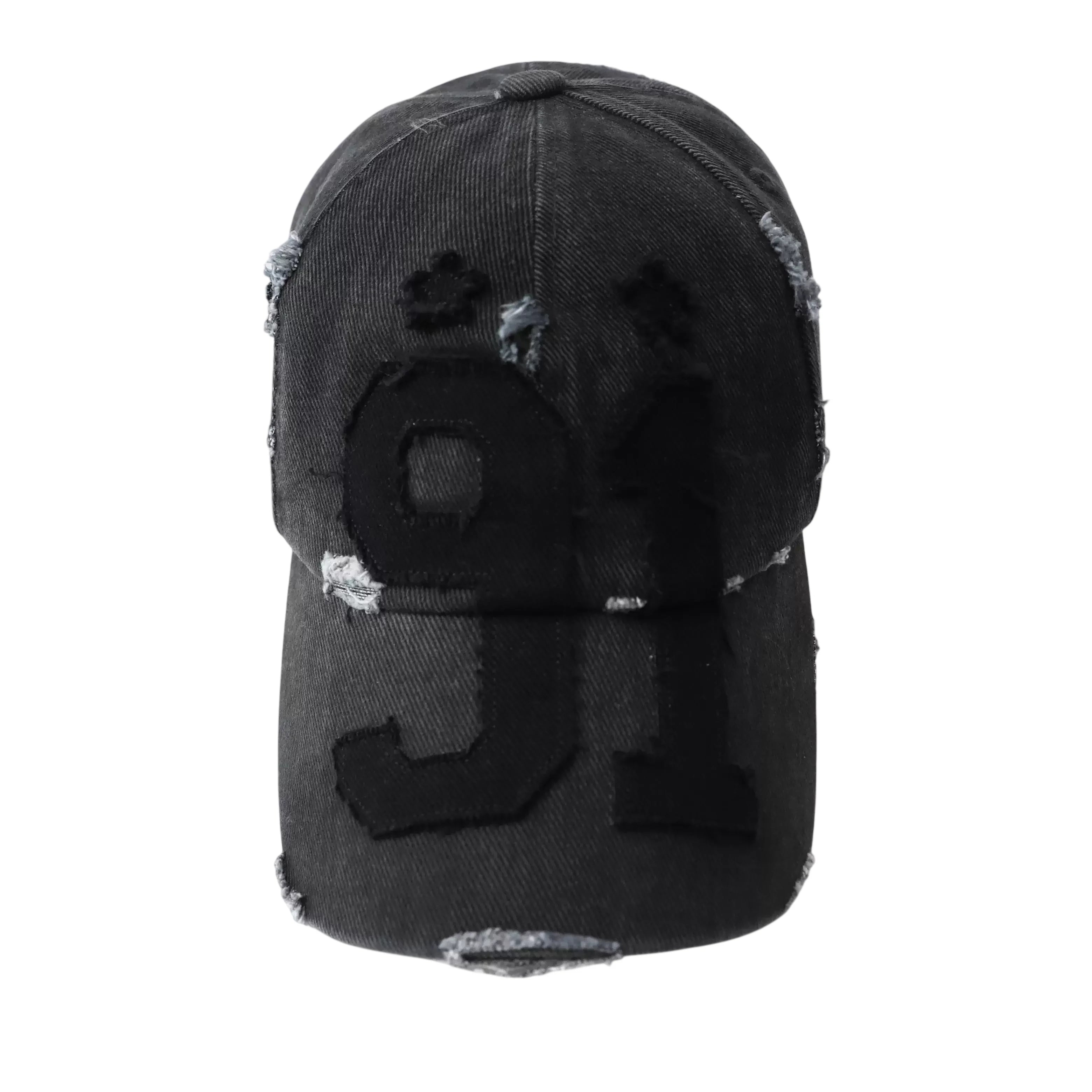This women's distressed charcoal baseball cap features a bold '01' graphic on the front, giving it a vintage, worn-in appearance. Designed with urban streetwear aesthetics in mind, it pairs perfectly with casual or edgy outfits. The soft, washed fabric and muted color offer a rugged yet versatile addition to your accessories collection.
