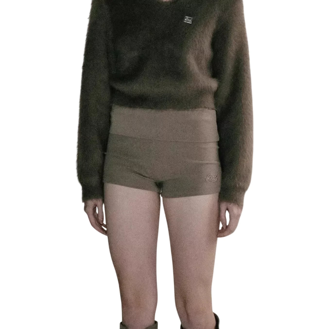 These comfortable high-waisted khaki shorts feature a sleek cuffed hem and a subtle embroidered logo for a minimalist touch. Designed for women, they are crafted from a soft, stretchy fabric that offers ease of movement and all-day comfort. Ideal for casual or athleisure wear, the foldable design adds versatility to your wardrobe.
