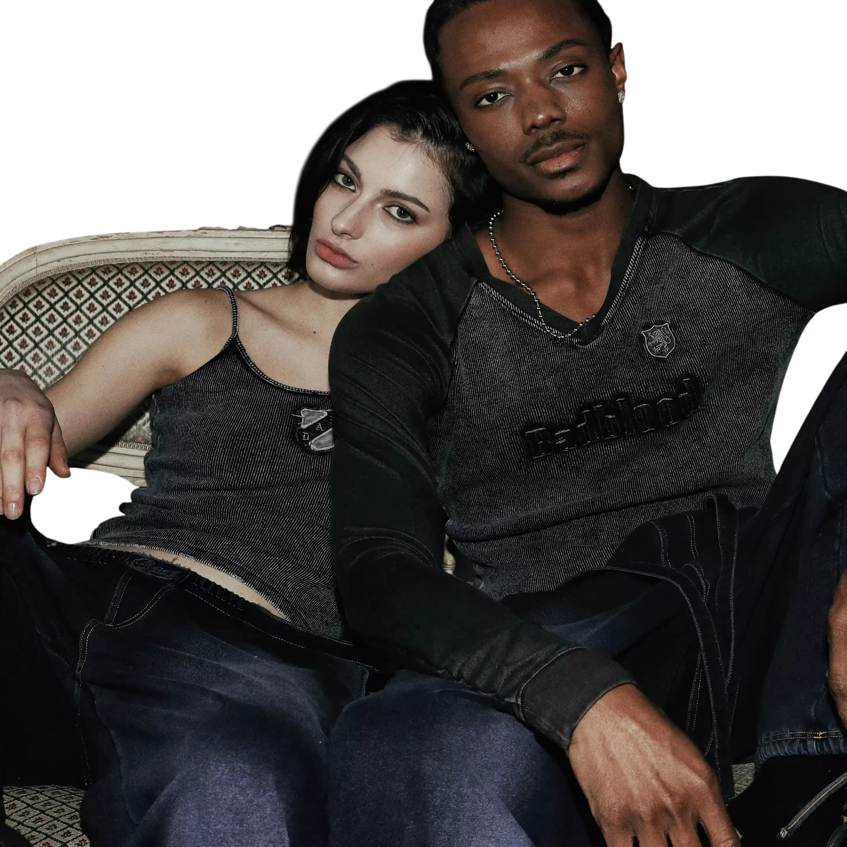 BADSEED Men's Denim V-Neck Long Sleeve Shirt - Blue and Black