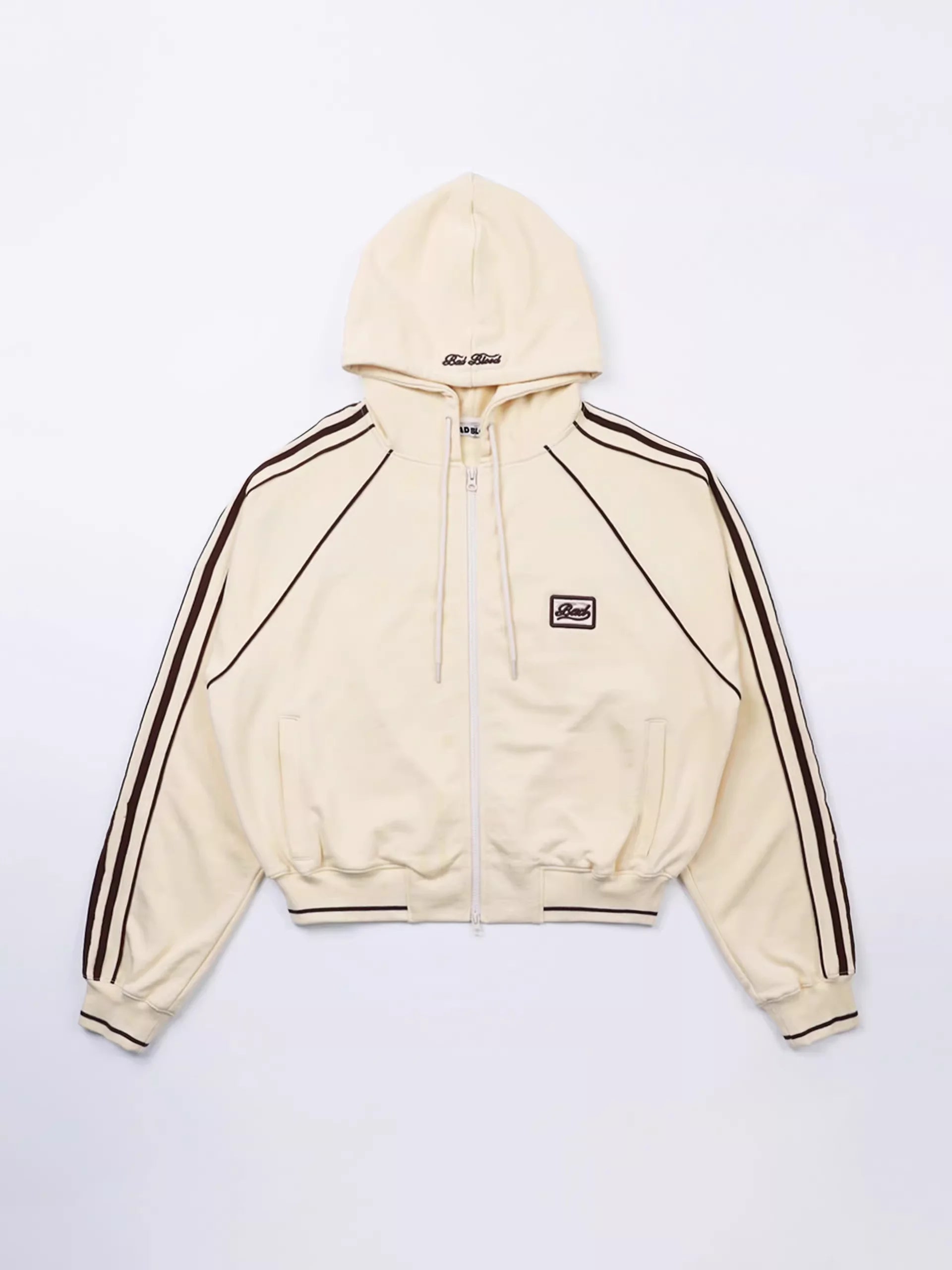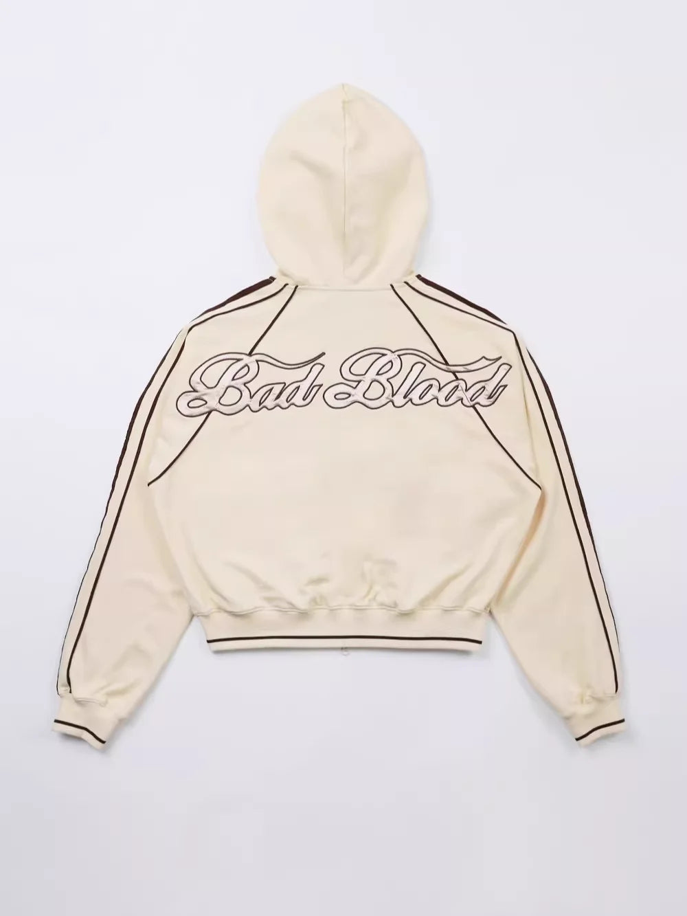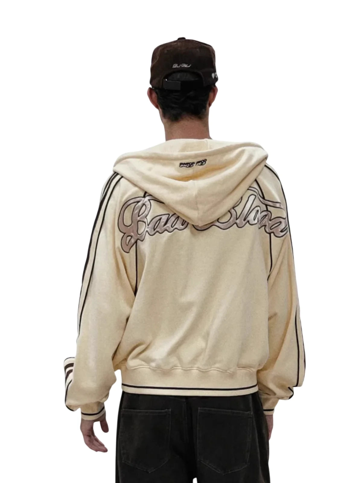 BADSEED Oversized Zip-Up Hoodie Jacket with Striped Sleeves - Women's Retro Style