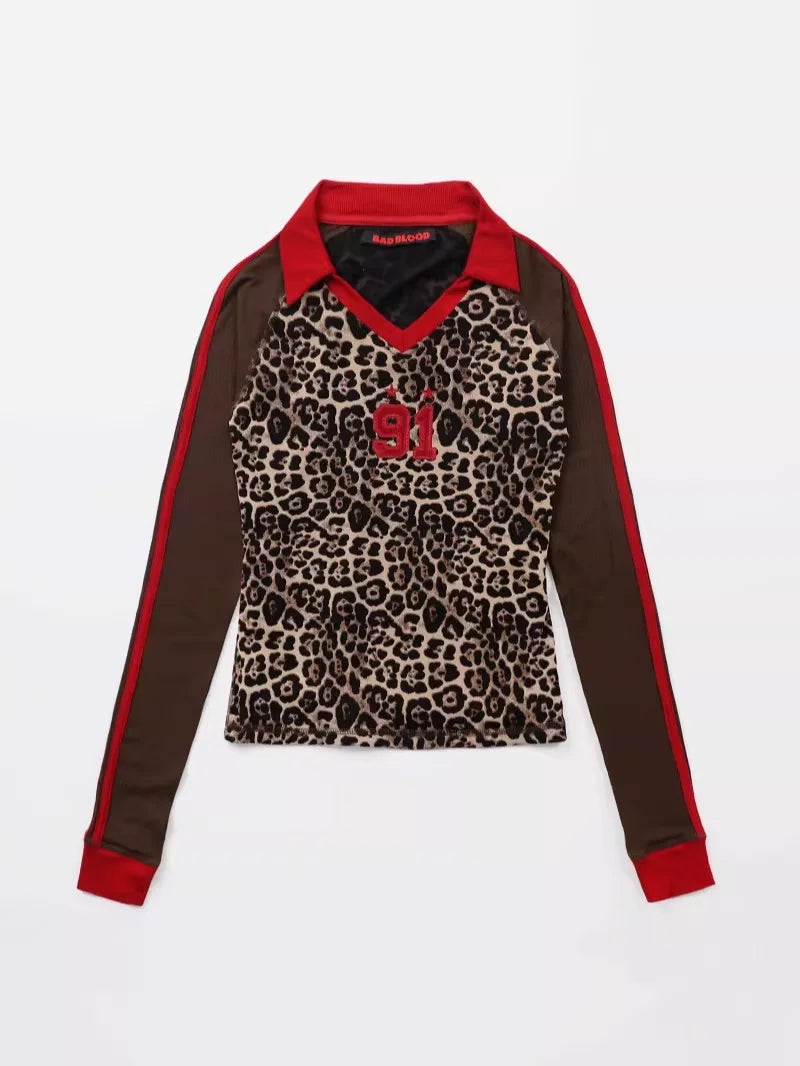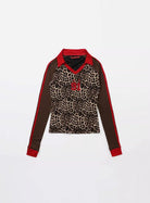 BADSEED Retro Leopard Print Long Sleeve Sweatshirt with Red Accents