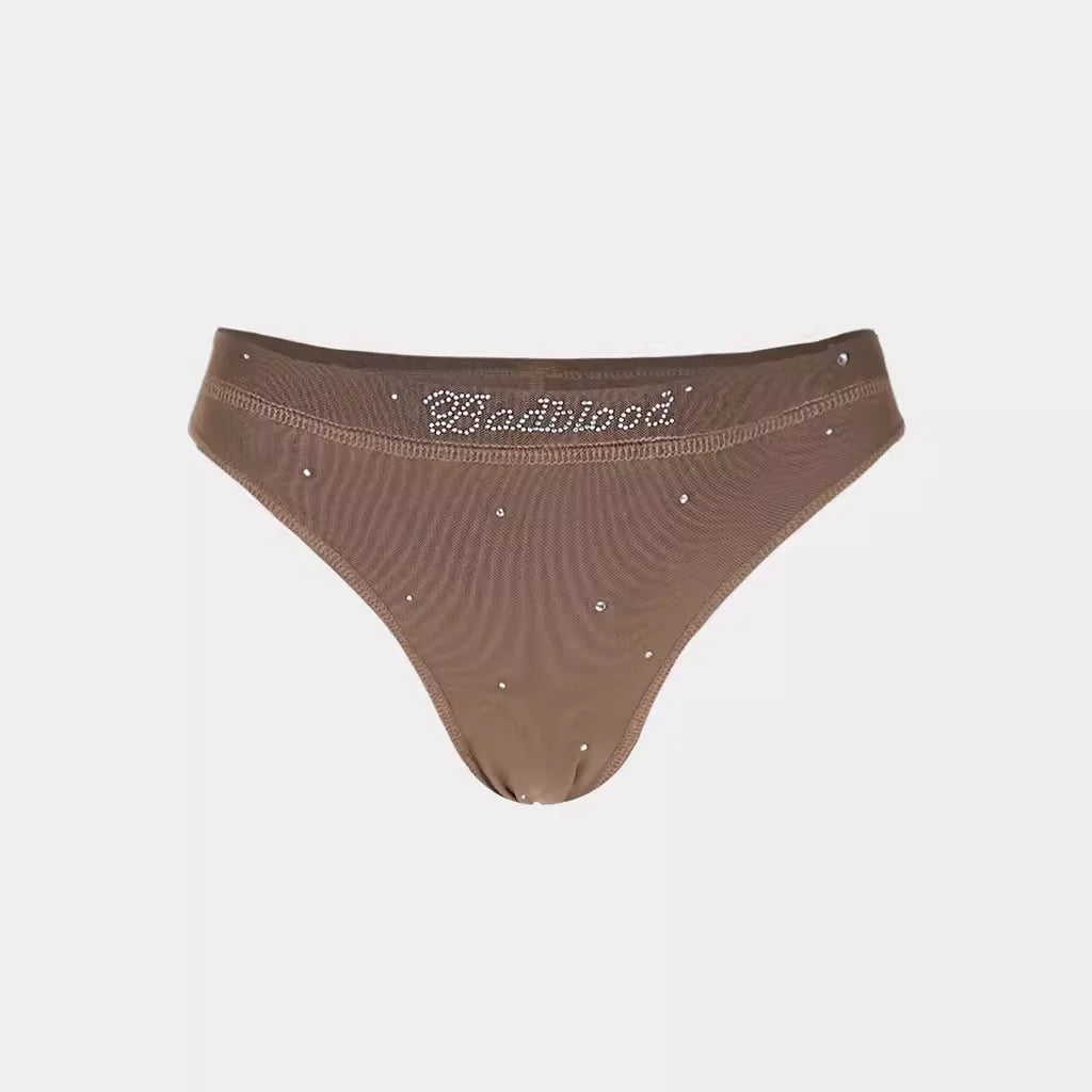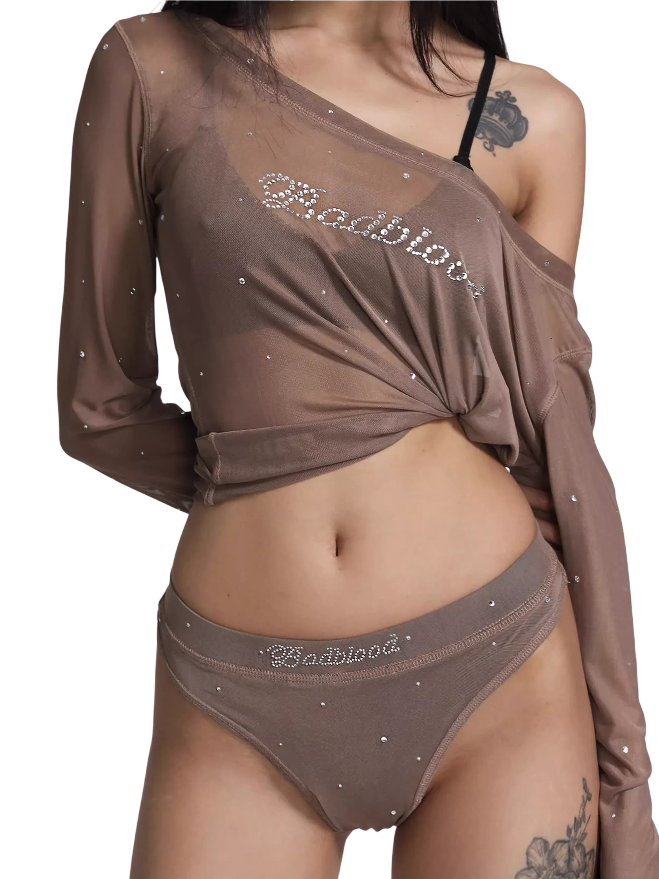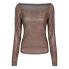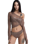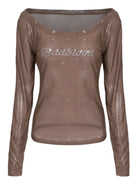 BADSEED Sheer Off-Shoulder Rhinestone Mesh Dance Top