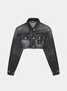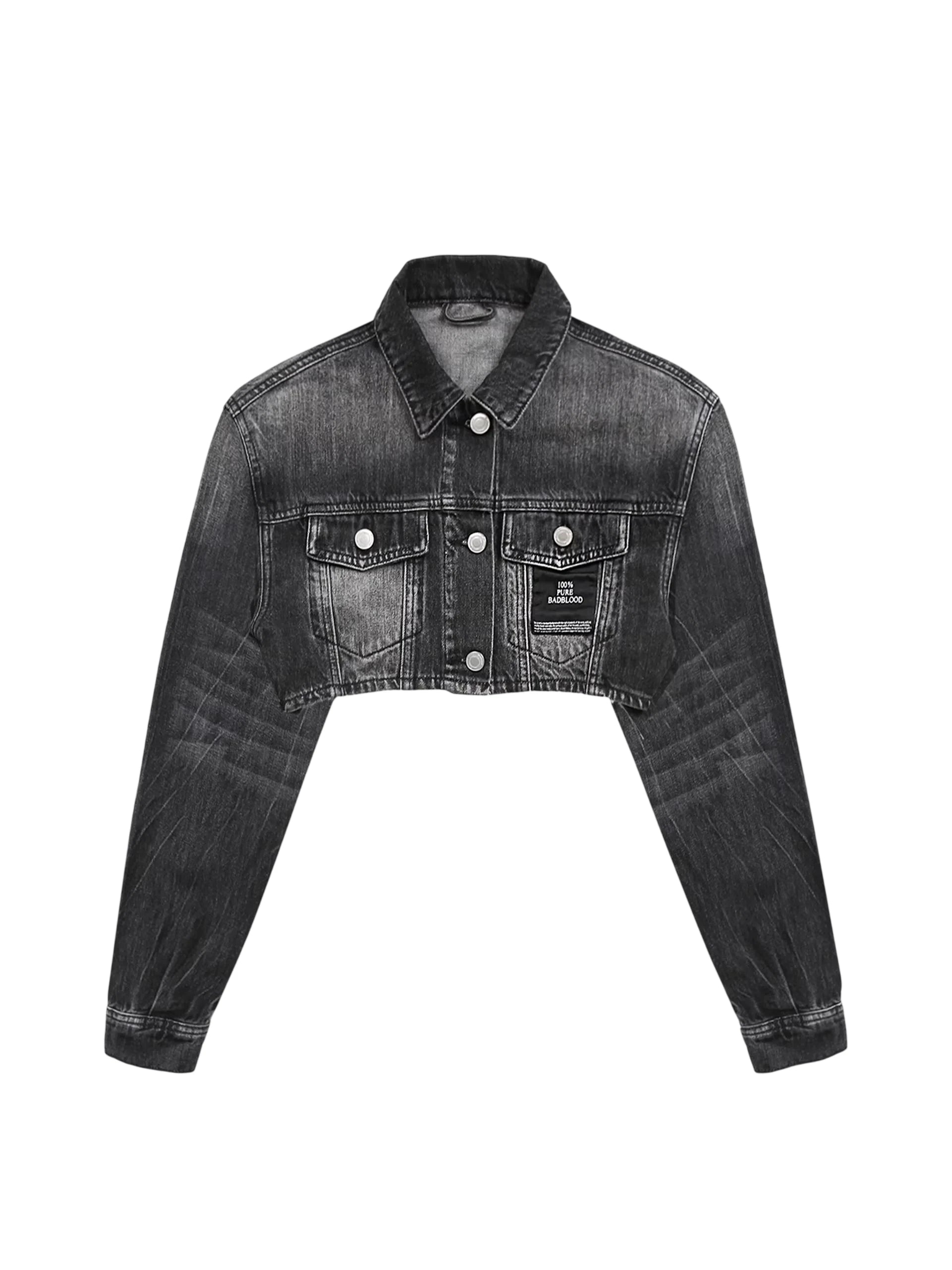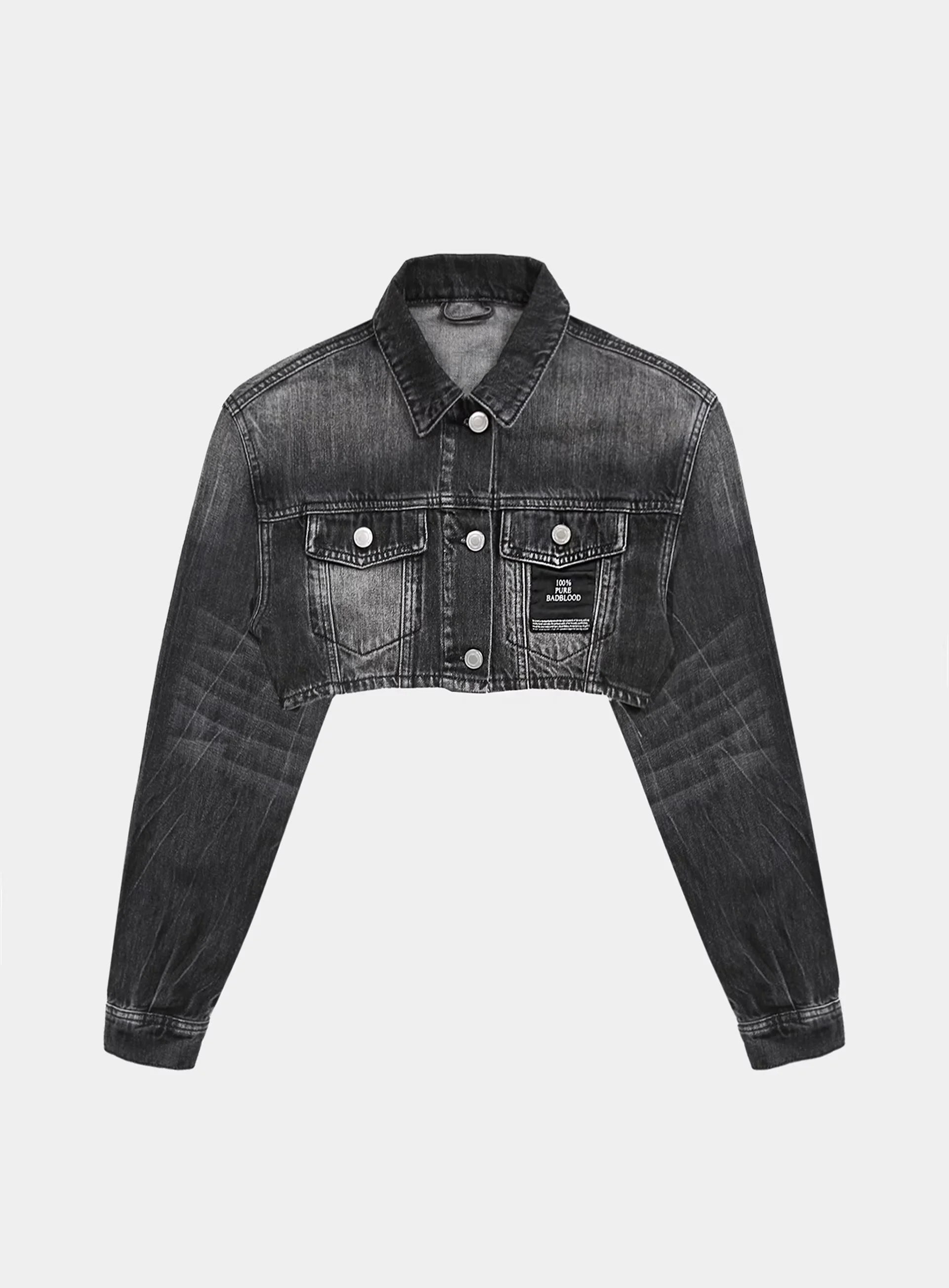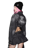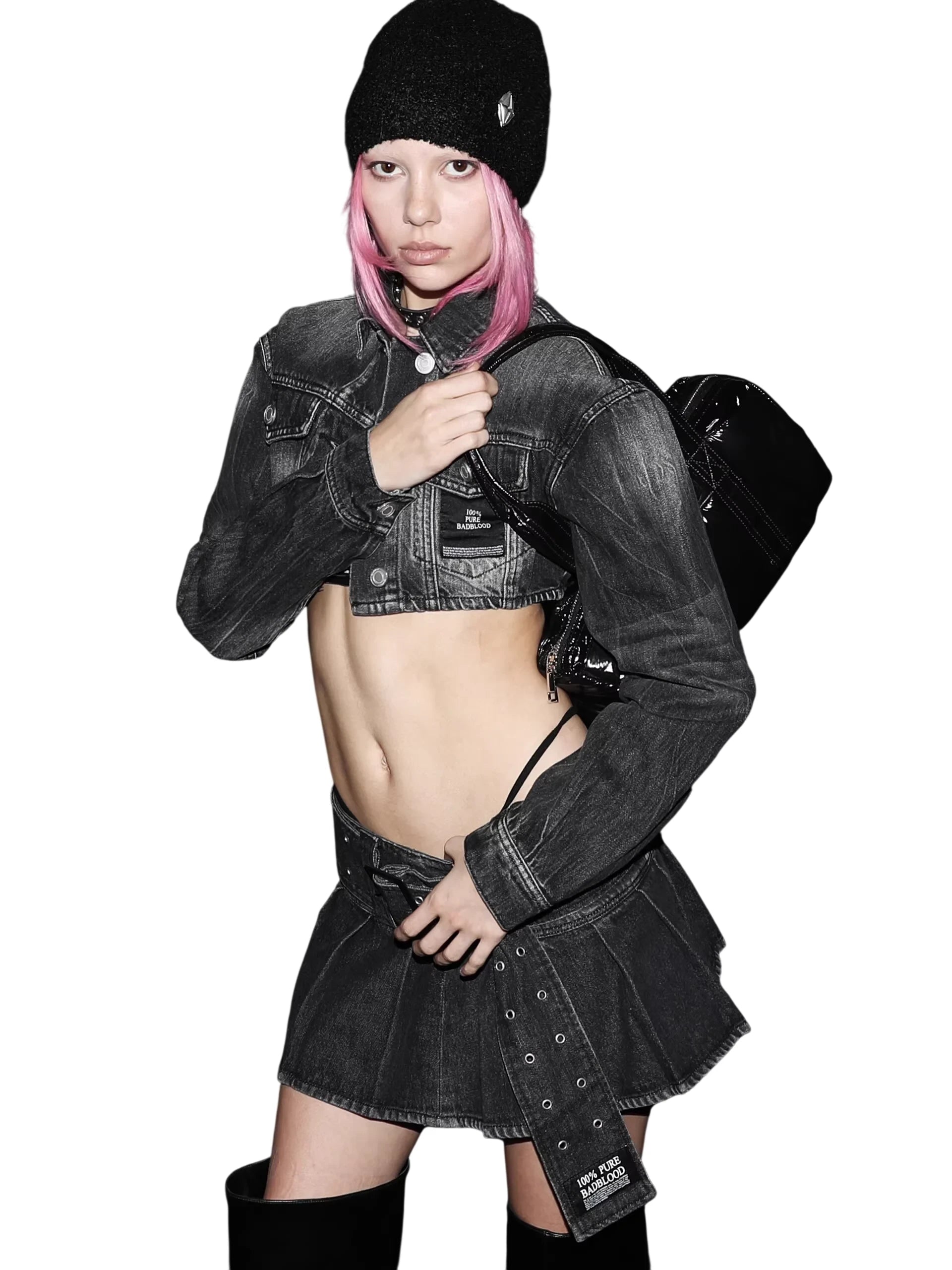 BADSEED Women's Cropped Black Denim Jacket and Pleated Mini Skirt Set