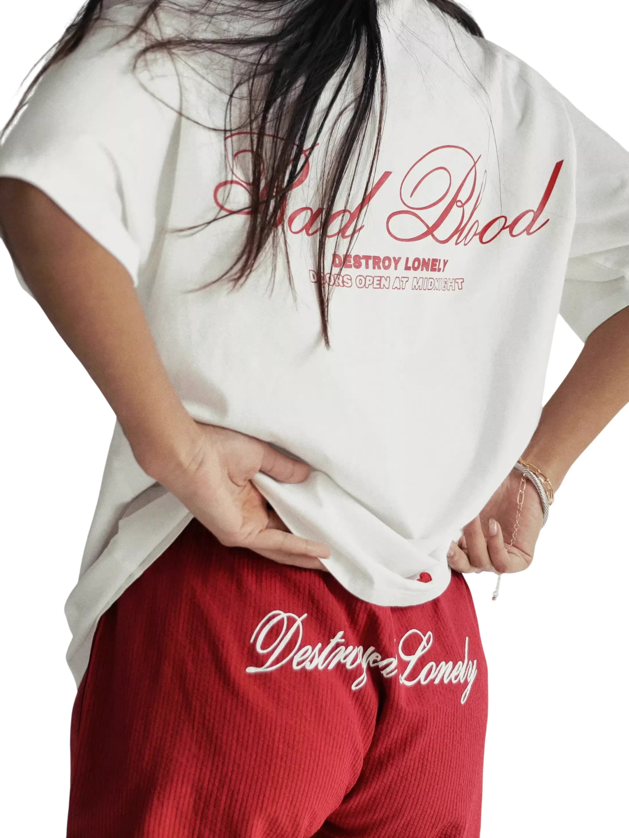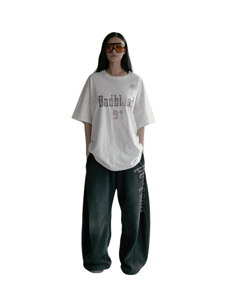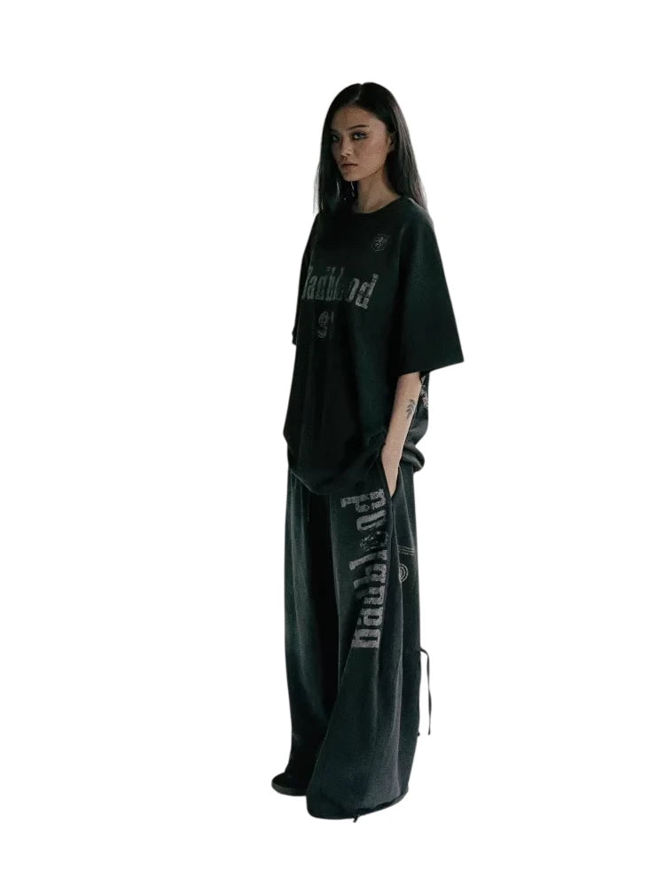 BADSEED Unisex Retro Letter Print Pullover Hoodie Tracksuit Set