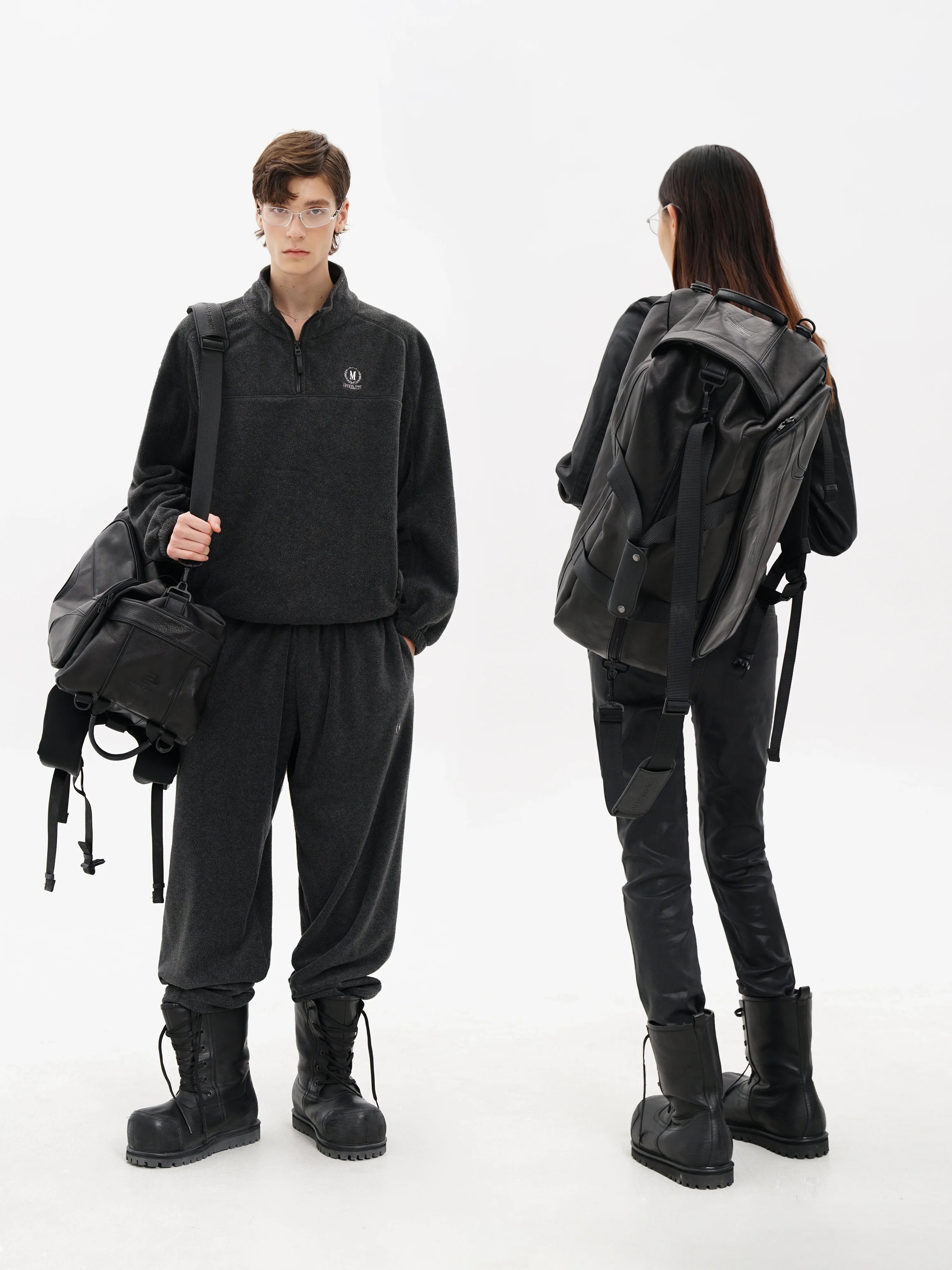 Crafted from genuine leather, this detachable travel duffel backpack offers both style and function for gym or travel use. Its structured, rectangular silhouette features a large front zippered pocket, useful side compartments, and dual handles with a snap button wrap for comfortable carrying. The embossed center logo and subtle panel detailing add to its refined, masculine appeal, while the unisex design makes it versatile for all users.