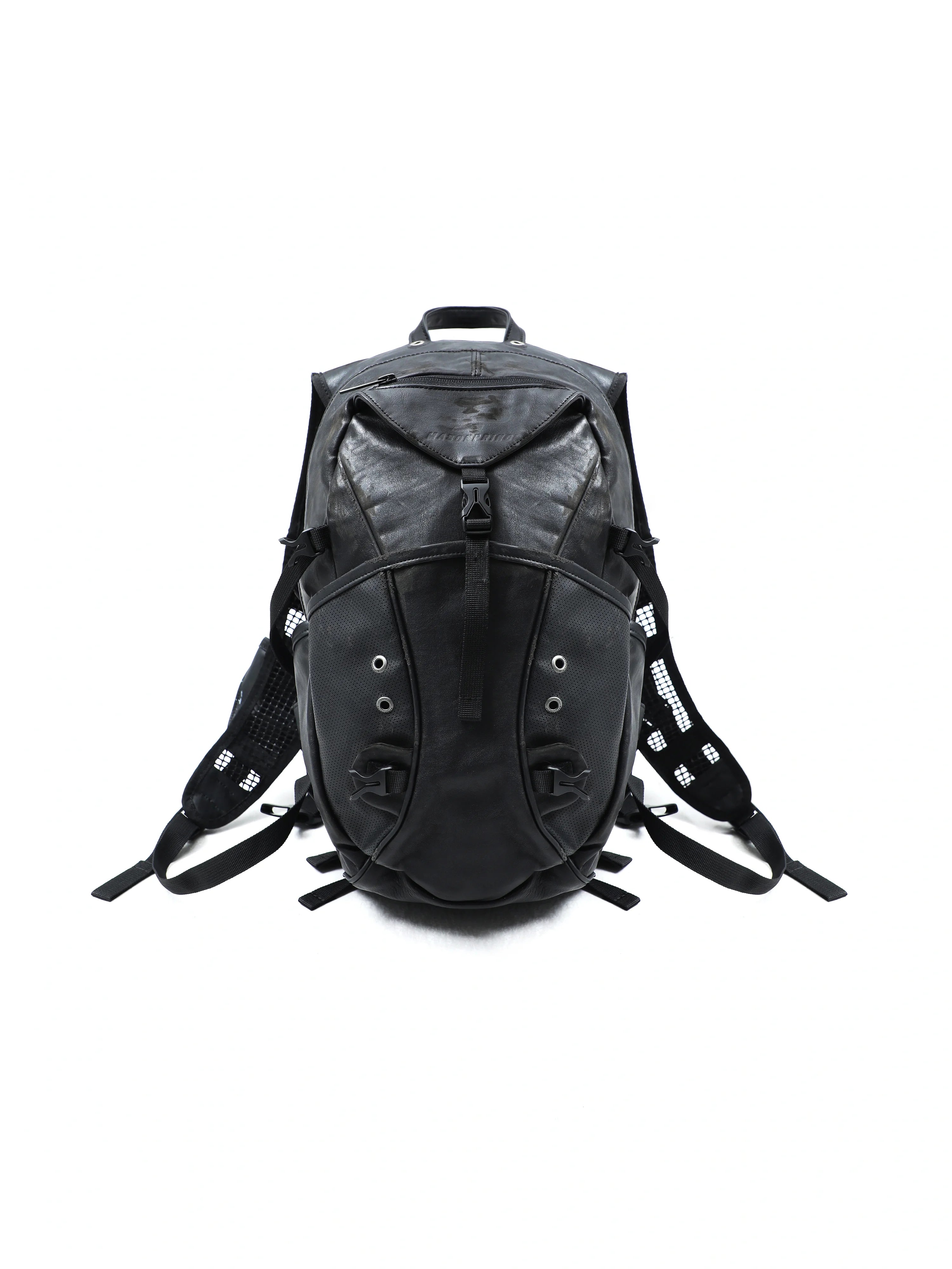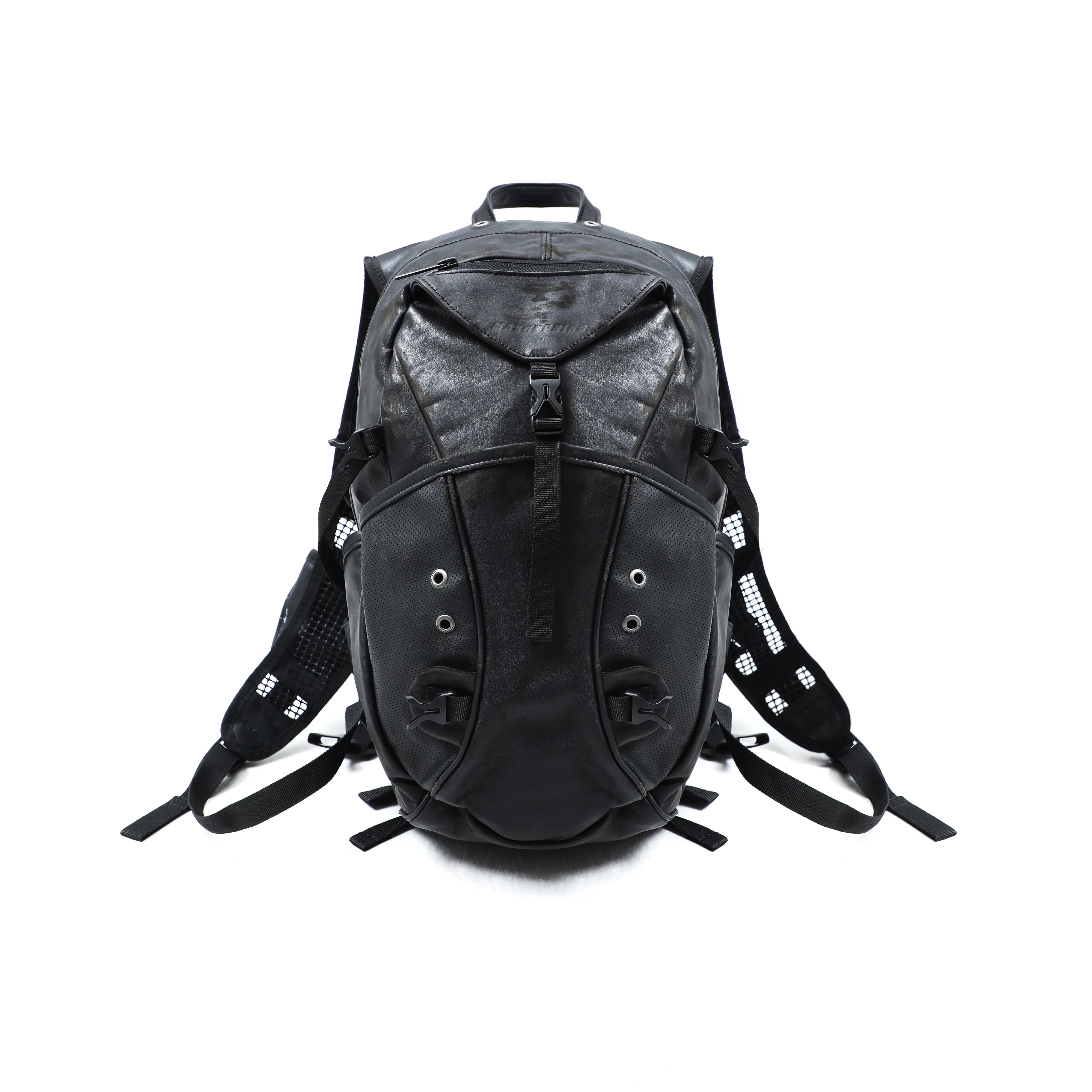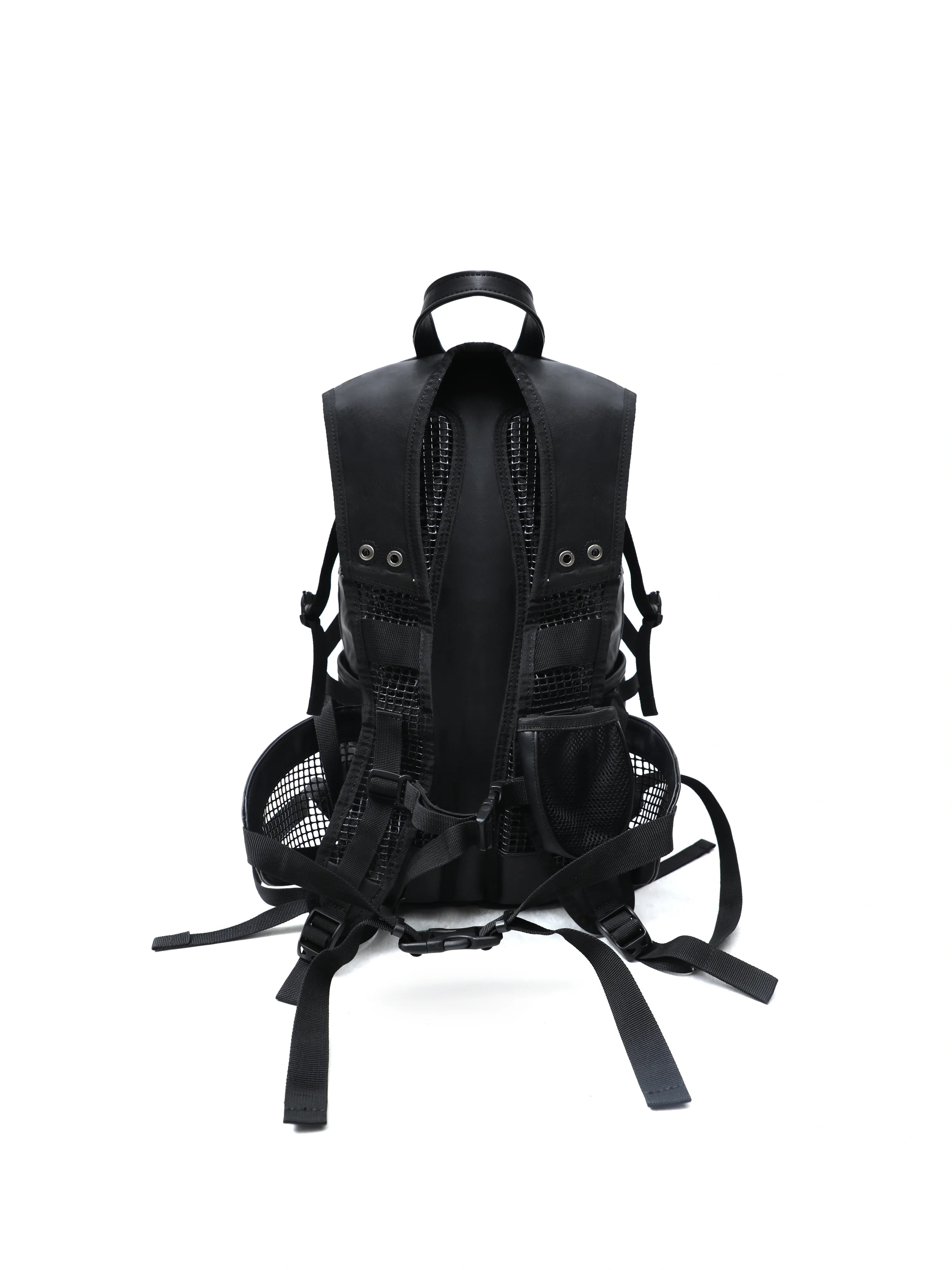Elevate your everyday carry with this 12-liter classic backpack, crafted from distressed genuine leather and durable mesh fabric. Featuring a structured silhouette with an industrial flair, it includes metal eyelets, functional front straps, and a central buckle closure on the top flap for enhanced security.