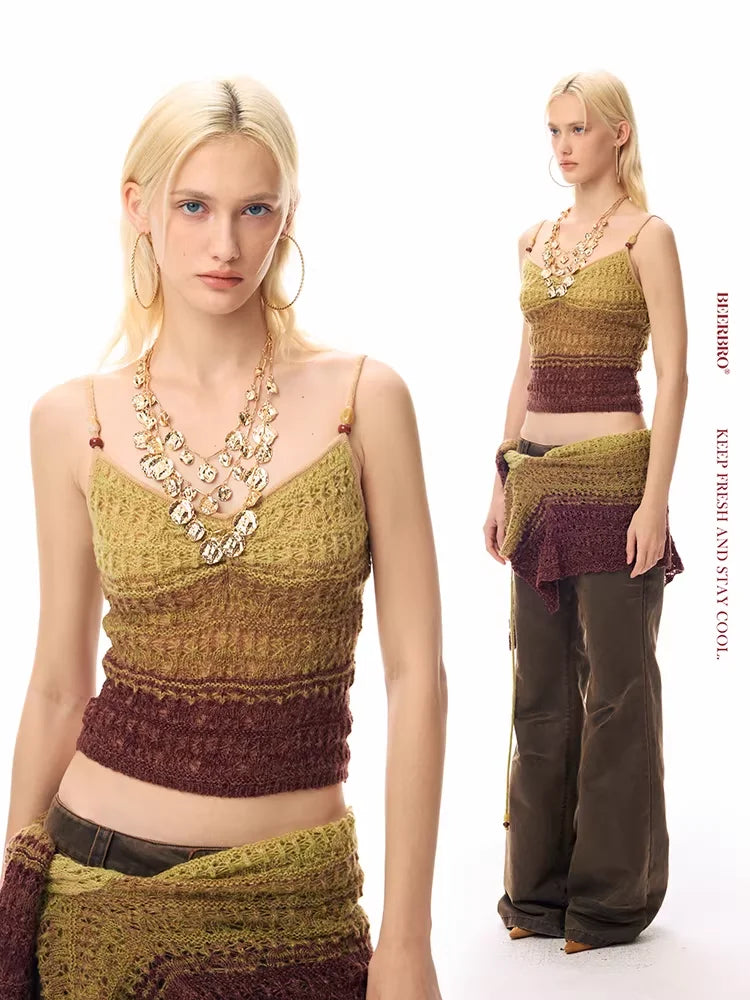BeerBro Gradient Mohair Knit Vest and Skirt Set