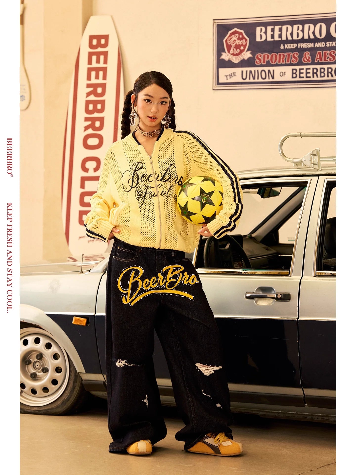 BeerBro Cotton Yarn Hollow Knit Contrast Sweater