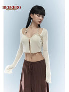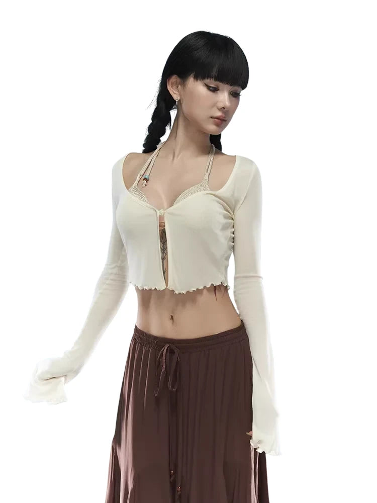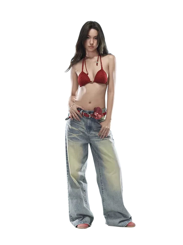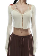Embrace island vibes with this stylish crochet halter bikini top, designed for women seeking a bold, summer-ready look. The top features a flattering halter neckline with dual shoulder straps and a decorative metal accent at the center. Ideal for beach outings or vacation wear, this top pairs perfectly with denim or swimwear for an effortlessly cool aesthetic.