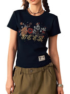 BeerBro Floral Mosaic Rhinestone T-Shirt for Women