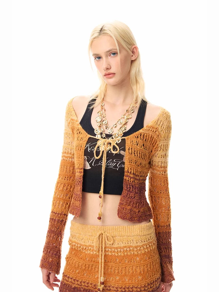BeerBro Metallic Gradient Openwork Knit Cardigan Set