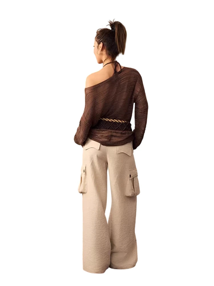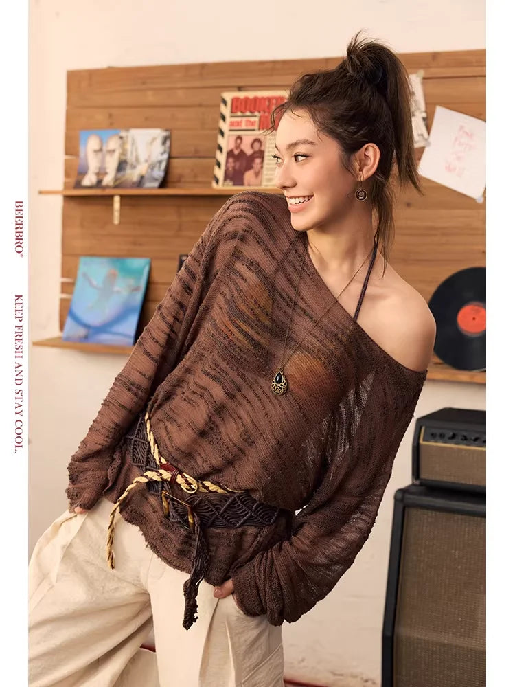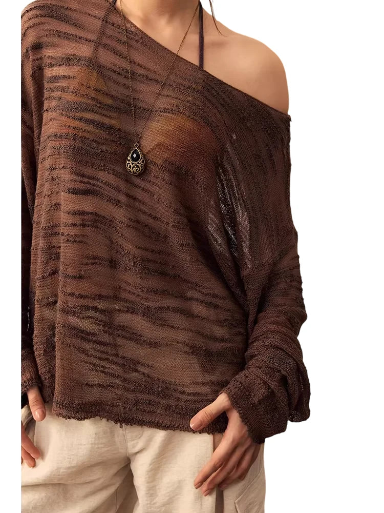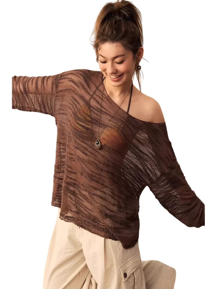 BeerBro Off-Shoulder Lightweight Sheer Knit Cover-Up