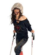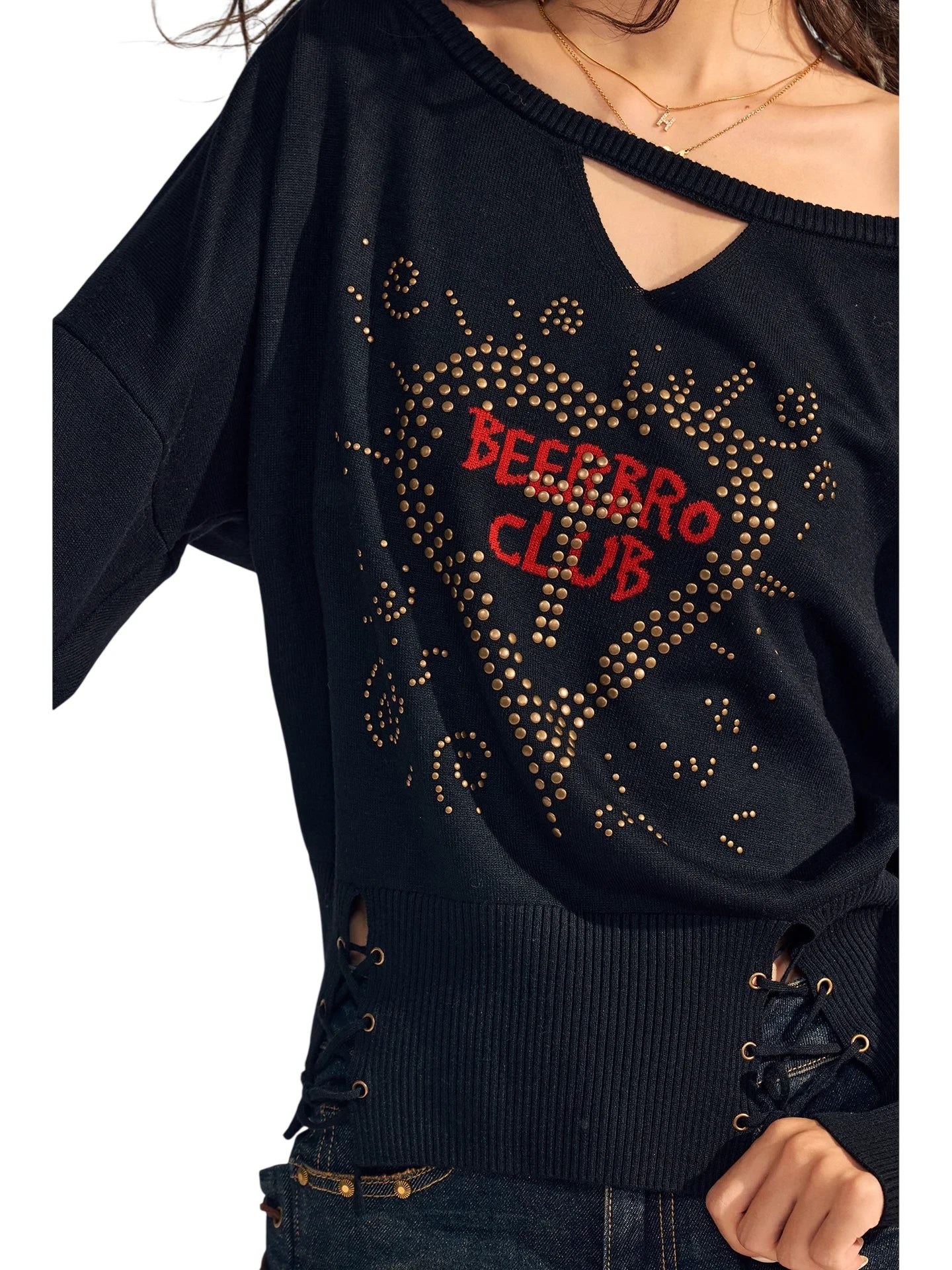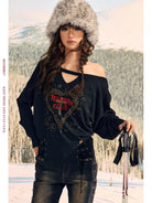 BeerBro Off-Shoulder Merino Wool Sweater with Rhinestone Heart Detail
