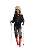 The front features a sparkling rhinestone heart embellishment that adds a standout touch to the sleek black fabric. Ideal for pairing with high-waisted pants or skirts, this sweater effortlessly blends warmth with trendy appeal.