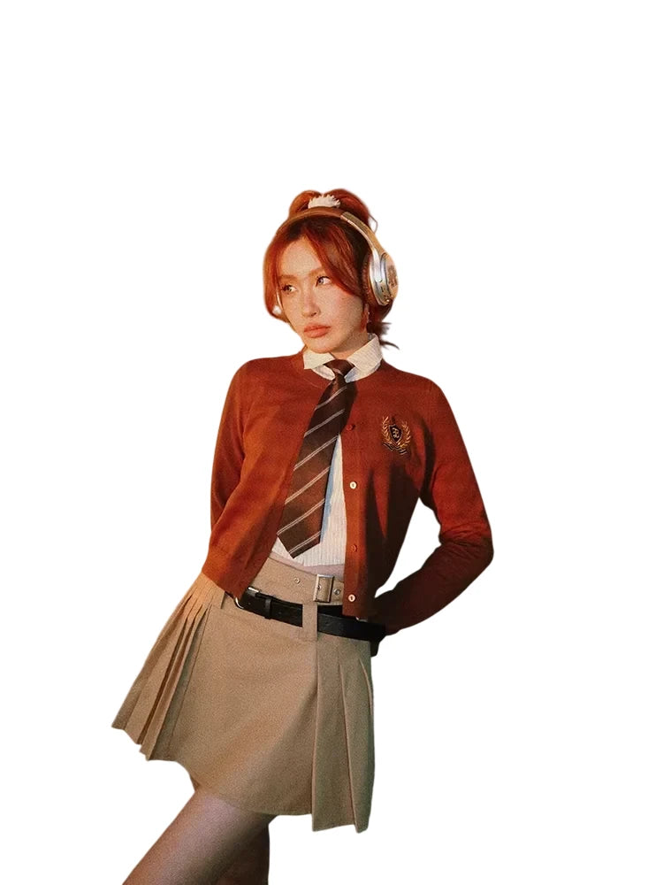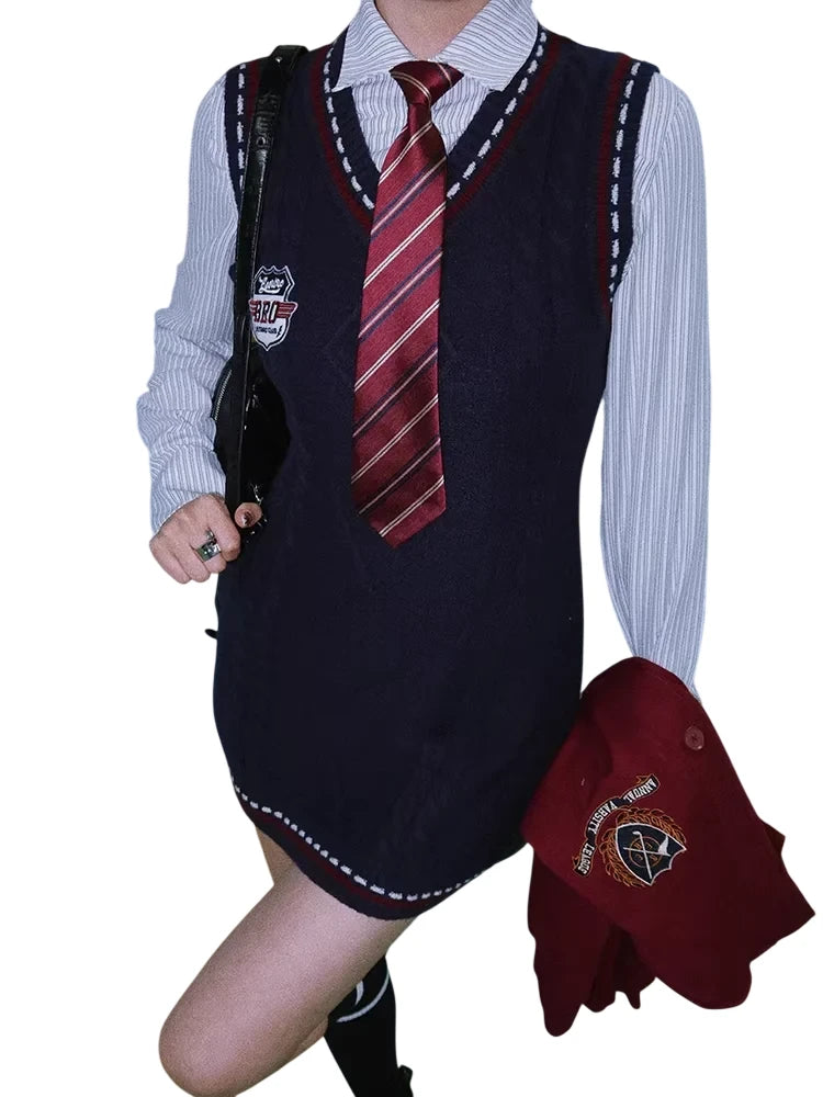 This pre-tied necktie features a classic twill fabric with a striped pattern, designed in a school-inspired style for women. It pairs well with button-down shirts and pleated skirts, offering a preppy and academic look. Ideal for uniforms or fashion-forward outfits aiming for a retro aesthetic.